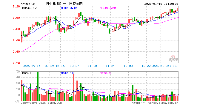 1月16日,截止午间收盘,创业板ETF博时(159908)涨0.10%,报3.126元,成交额2506.21万元。创业板ETF博时(159908)重仓股方面,宁德时代截止午盘跌0.21%,中际旭创涨0.35%,东方财富跌0.29%,新易盛跌0.18%,阳光电源涨2.33%,胜宏科技跌0.05%,汇川技术涨1.27%,迈瑞医疗跌1.08%,亿纬锂能涨0.63%,温氏股份跌3.11%。