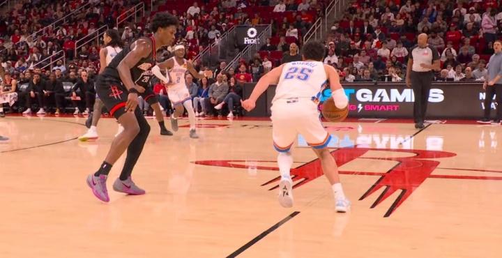 这么明显的回线,裁判愣是没响哨! 乌多卡暂停问两句,直接给一个T。这裁判简直是离谱,且从慢镜头回看,米切尔是持球推进,在中线附近,裁判的注意力要天然的放在他身上和脚上,这是基本素养,结果米切尔明显的回线居然被无视了。 火箭这一段时间打的特别差,这球给了火箭,也赢不了雷霆,但吹罚是另一码事,要是说脚后跟抬起来在线上游走,那裁判没看见就算了。 这米切尔都相当于去后场转了一圈了,裁判还是装作没看见,就有点扯淡了。