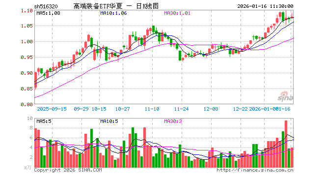 1月16日,截止午间收盘,高端装备ETF华夏(516320)涨0.84%,报1.078元,成交额429.04万元。高端装备ETF华夏(516320)重仓股方面,宁德时代截止午盘跌0.21%,阳光电源涨2.33%,汇川技术涨1.27%,三一重工跌0.27%,中国船舶跌1.67%,亿纬锂能涨0.63%,隆基绿能跌0.11%,徐工机械涨0.99%,国电南瑞涨2.77%,中国中车跌1.31%。