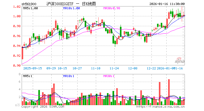 1月16日,截止午间收盘,沪深300ESGETF(561900)涨0.20%,报1.002元,成交额151.50万元。沪深300ESGETF(561900)重仓股方面,贵州茅台截止午盘跌0.29%,宁德时代跌0.21%,招商银行跌0.38%,中际旭创涨0.35%,长江电力跌0.89%,美的集团涨0.18%,比亚迪涨0.44%,兴业银行跌0.25%,工商银行跌0.65%,恒瑞医药跌1.68%。