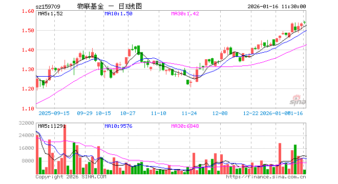 1月16日,截止午间收盘,物联网ETF工银(159709)涨0.59%,报1.539元,成交额35.52万元。物联网ETF工银(159709)重仓股方面,中际旭创截止午盘涨0.35%,新易盛跌0.18%,美的集团涨0.18%,北方华创涨2.98%,汇川技术涨1.27%,中兴通讯跌0.45%,海康威视跌1.18%,科大讯飞涨0.49%,歌尔股份跌0.75%,华工科技跌0.51%。