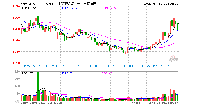 1月16日,截止午间收盘,金融科技ETF华夏(516100)跌2.34%,报1.500元,成交额1.09亿元。金融科技ETF华夏(516100)重仓股方面,同花顺截止午盘跌2.01%,东方财富跌0.29%,指南针跌0.09%,恒生电子跌2.92%,润和软件跌3.95%,东华软件跌3.33%,银之杰跌1.86%,新大陆跌4.79%,广电运通跌2.09%,大智慧跌2.70%。
