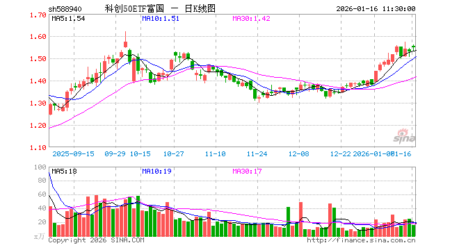 1月16日,截止午间收盘,科创50ETF富国(588940)涨1.18%,报1.548元,成交额2404.22万元。科创50ETF富国(588940)重仓股方面,中芯国际截止午盘涨1.21%,海光信息跌2.44%,寒武纪涨0.26%,澜起科技涨3.30%,中微公司涨2.54%,联影医疗跌1.93%,金山办公跌1.13%,芯原股份跌4.34%,石头科技涨0.17%,传音控股跌1.32%。