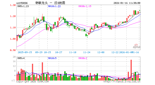 1月16日,截止午间收盘,物联网ETF南方(159896)涨0.73%,报1.249元,成交额194.26万元。物联网ETF南方(159896)重仓股方面,中际旭创截止午盘涨0.35%,立讯精密涨2.09%,汇川技术涨1.27%,中兴通讯跌0.45%,兆易创新涨7.08%,豪威集团涨1.23%,科大讯飞涨0.49%,海康威视跌1.18%,美的集团涨0.18%,海尔智家涨0.00%。