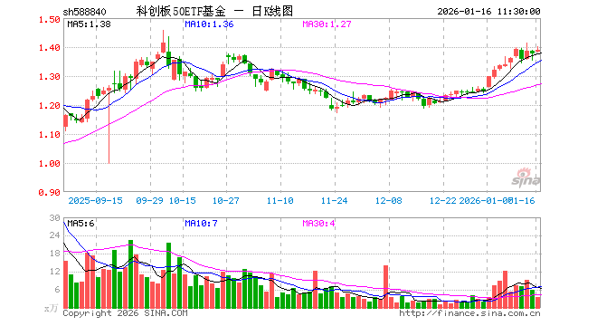 1月16日,截止午间收盘,科创板50ETF基金(588840)涨0.87%,报1.388元,成交额479.46万元。科创板50ETF基金(588840)重仓股方面,海光信息截止午盘跌2.44%,中芯国际涨1.21%,寒武纪涨0.26%,澜起科技涨3.30%,中微公司涨2.54%,联影医疗跌1.93%,金山办公跌1.13%,芯原股份跌4.34%,石头科技涨0.17%,沪硅产业涨0.31%。