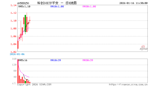 1月16日,截止午间收盘,科创50ETF平安(589150)涨0.55%,报1.101元,成交额715.72万元。科创50ETF平安(589150)重仓股方面,中芯国际截止午盘涨1.21%,寒武纪涨0.26%,海光信息跌2.44%,澜起科技涨3.30%,金山办公跌1.13%,联影医疗跌1.93%,拓荆科技涨2.65%,芯原股份跌4.34%,沪硅产业涨0.31%,传音控股跌1.32%。