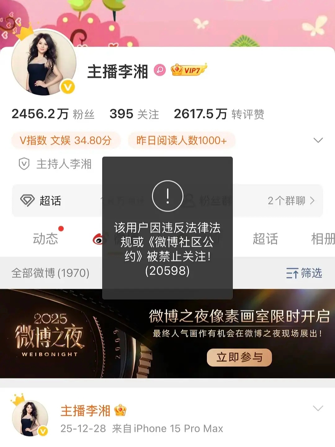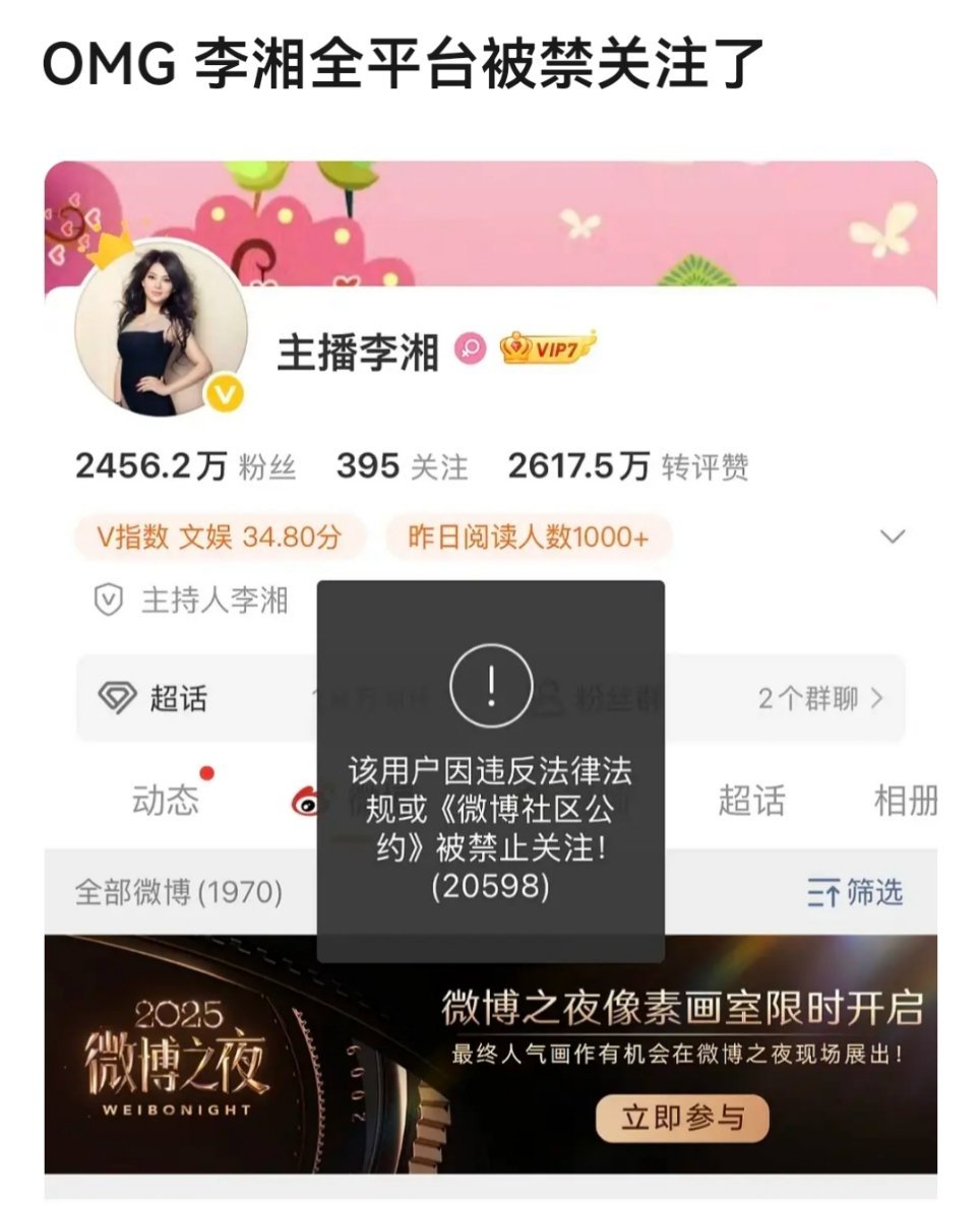 我靠谁来告诉我李湘咋了,全平台禁止关注了不会是税有问题吧那王诗龄咋办