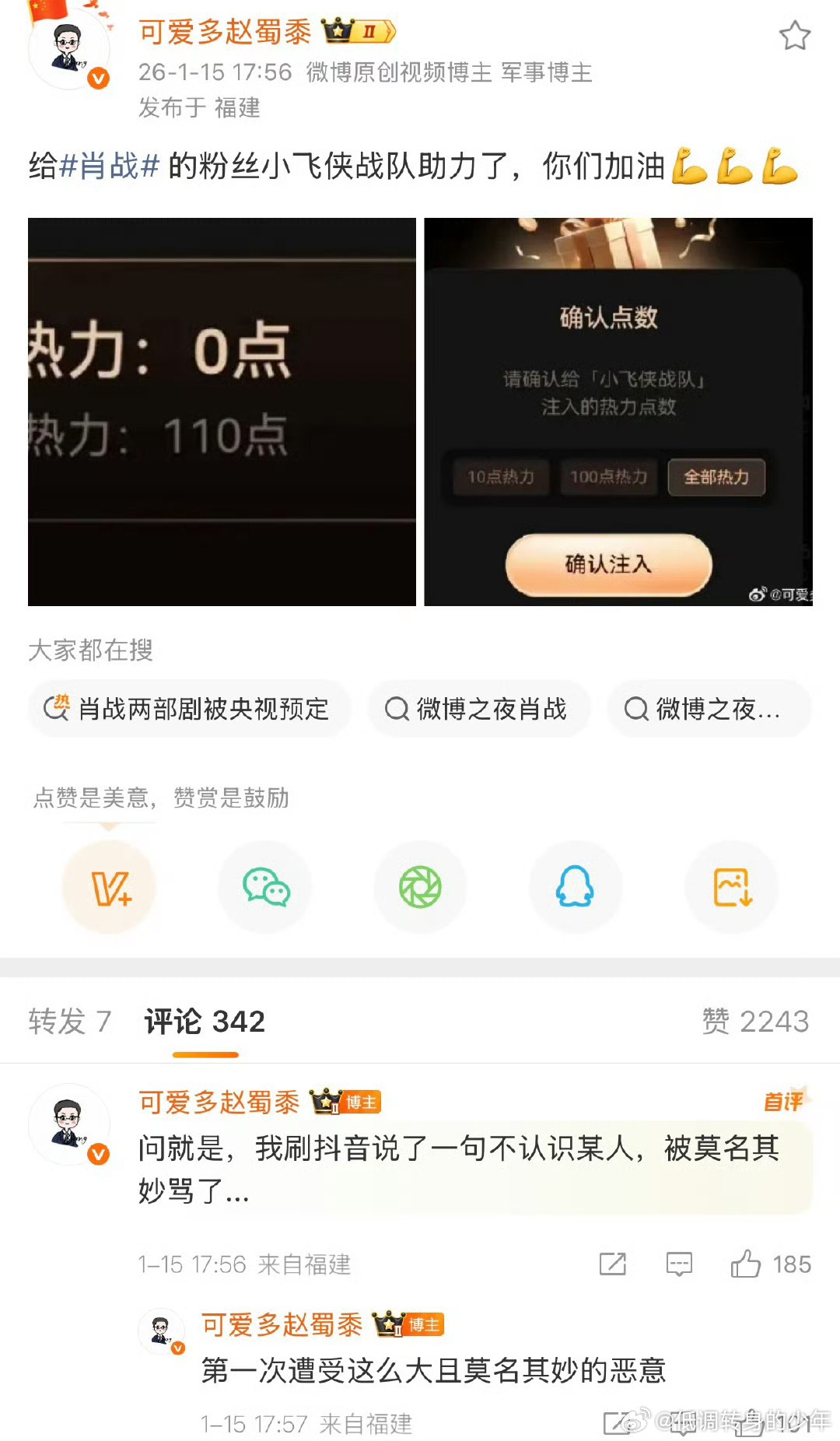 上古神🦐都觉醒了~听说这是16年的肖战老粉,还有⭕外的都在助力,微博之夜 可以呀! 向全世界安利我担微博之夜抢座101