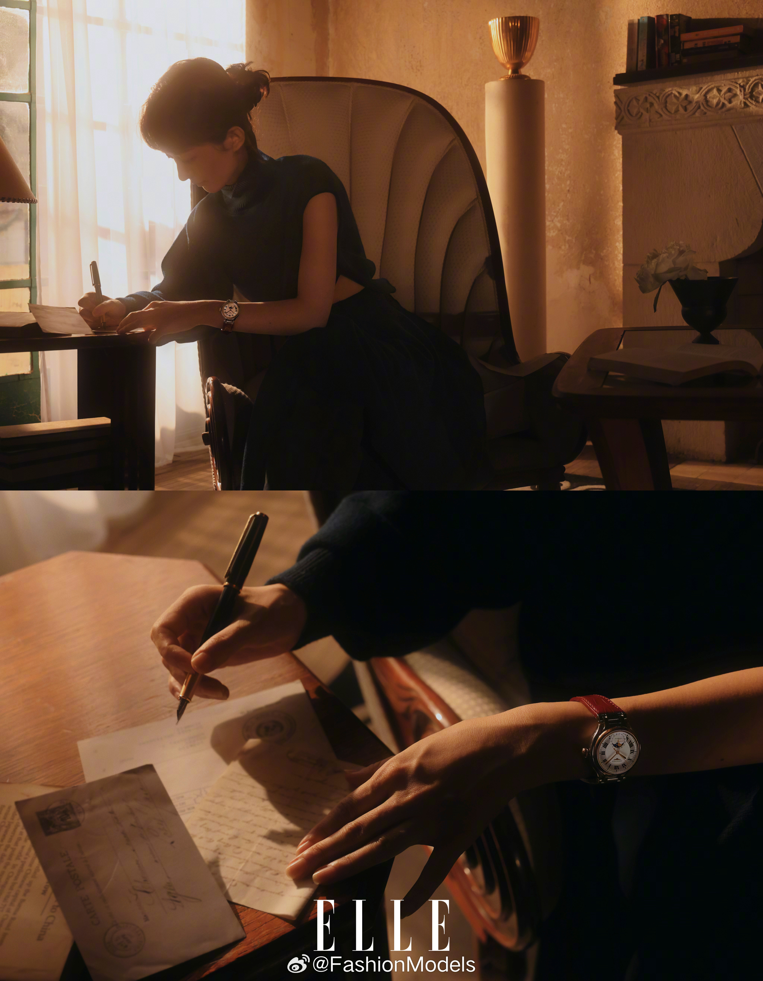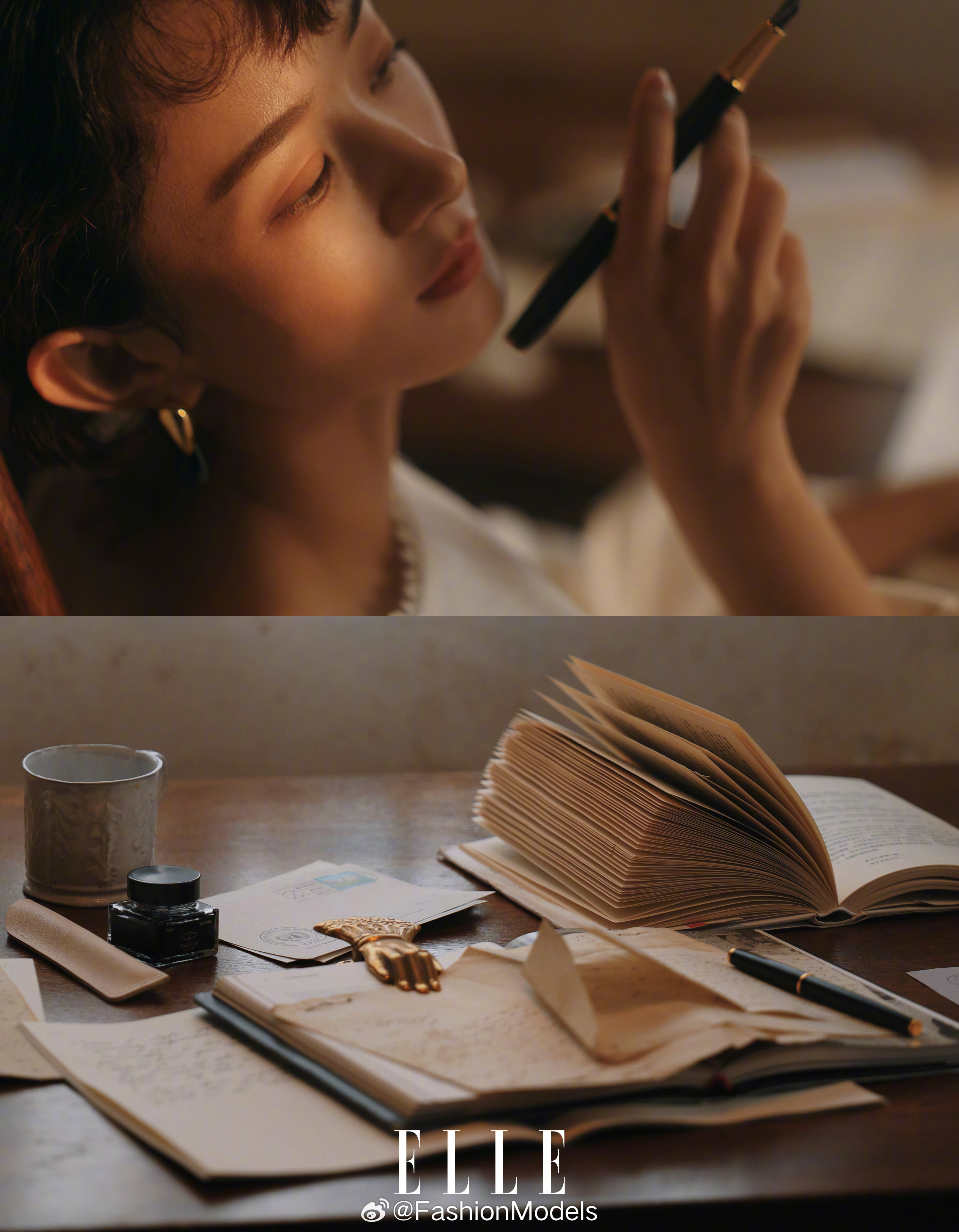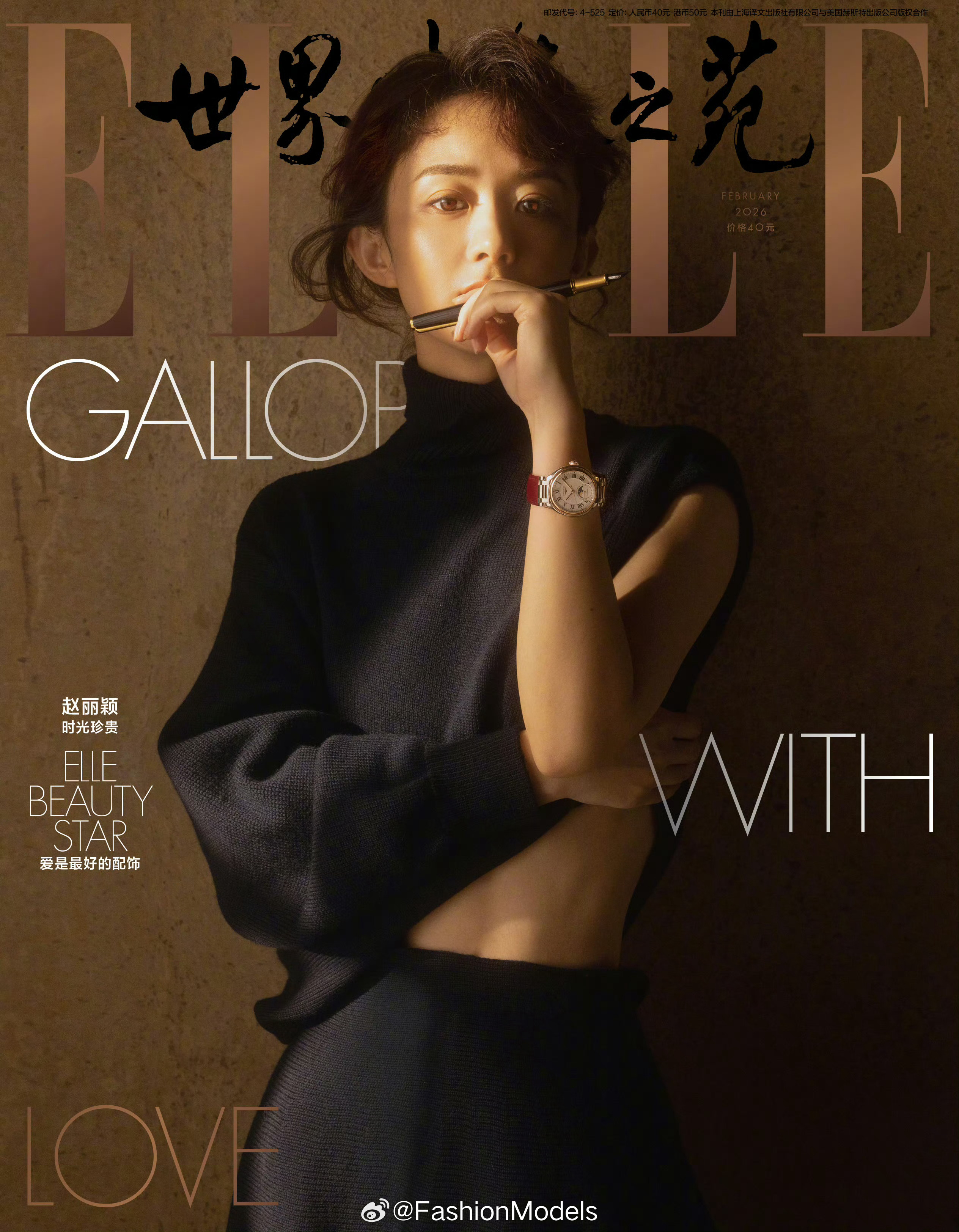 赵丽颖登上ELLE 2月刊封面,在摄影师陈漫的镜头中,她化身为复古油画中的女作家