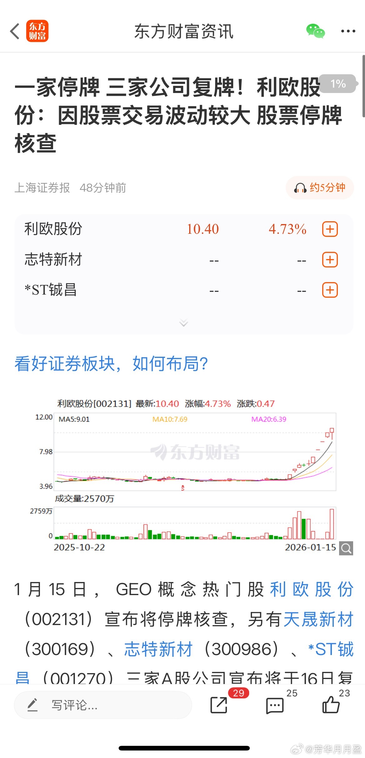 前天晚上易点停牌,昨晚利欧停牌,这说明什么?现在的A股不是不可以炒题材,但不能乱