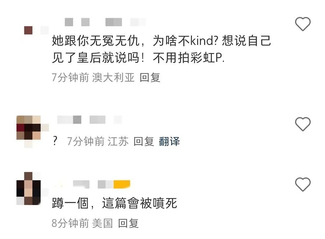 有人说是之前闫学晶炫富连累李湘也被禁止关注了,那不至于吧?关键李湘没有像闫学晶一样fdiss普通网友。暗戳戳的炫自己倒是肯定的。图片是去年她见到了卡米拉,结果底下全是戴安娜粉丝和卡米拉粉丝互撕李湘全平台账号被禁止关注
