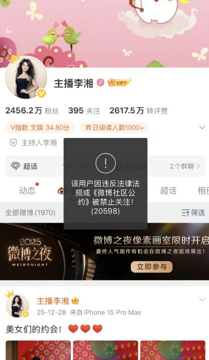 李湘平台限制李湘被各平台禁止关注李湘全平台被禁止关注,她怎么了?最近的动态也很少