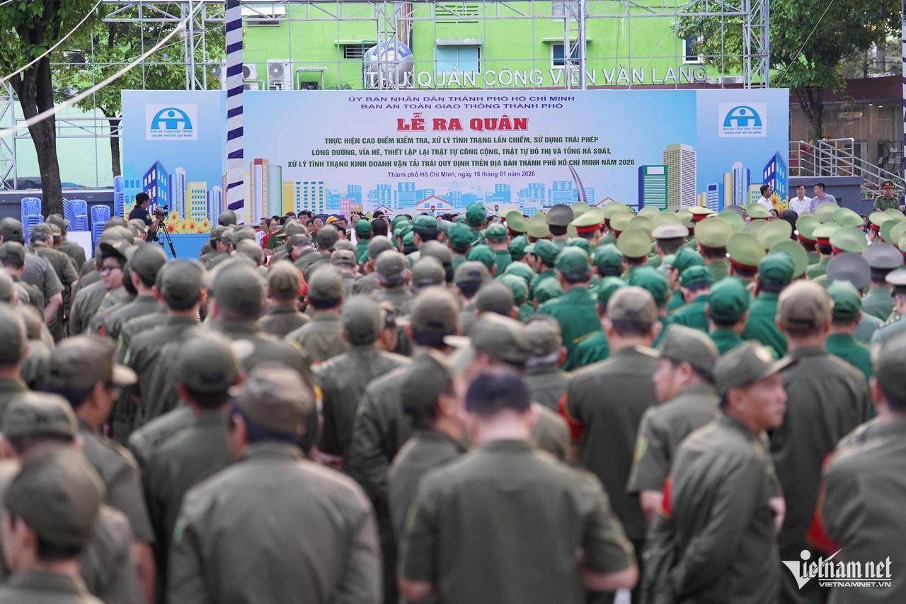 越南胡志明市出动警队处理人行道侵占问题:将定期检查和评估结果 胡志明市人民委员会领导确认,恢复道路和人行道秩序工作是一项经常性任务。公社、区、特区的管理区域发生长期、复杂的侵占行为,村长要负直接责任。 26年1月16日,胡志明市交通安全委员会举行启动仪式,加强巡查,处理侵占和非法使用道路和人行道,建立2026年城市秩序。 这是胡志明市刚刚扩大行政边界(与巴地-头顿和平阳合并),成为人口超过1400万的特大城市的背景下的行动高峰期。 最后一图胡志明市警察局副局长阮廷阳大校