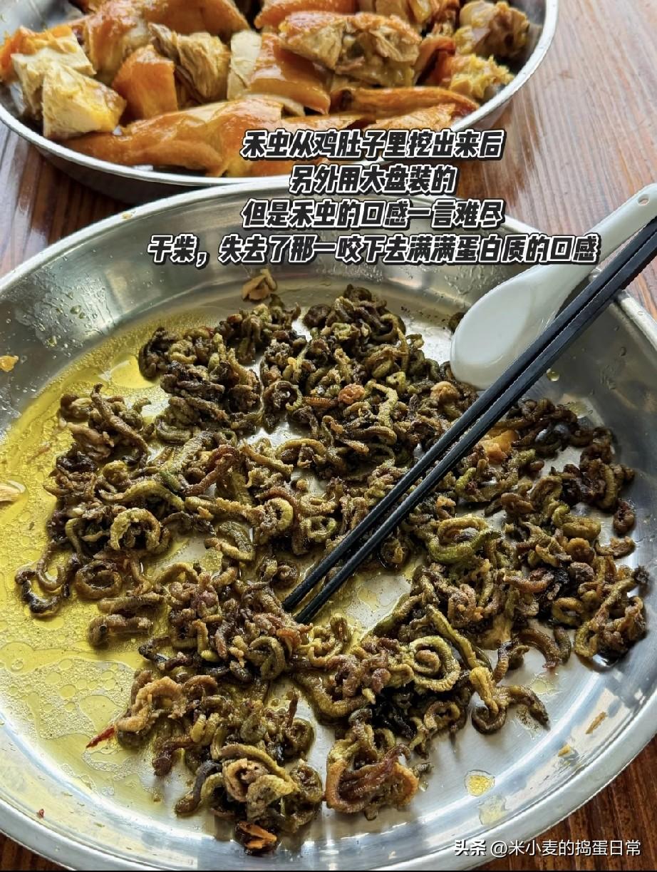 禾虫烧鸡,260元一只还得抢,值吗? 在顺德找吃的真的要靠缘分!今天挖到一家藏在园艺场里的无名烧鸡店,导航到菜地鱼塘边才找着,店里就4张台,想吃必须提前预定,来晚一步直接扑空。 狠心点了招牌禾虫烧鸡,260块一只其实是160的烧骟鸡加100一斤的禾虫。刚端上桌时被惊艳到,鸡皮烤得油亮焦脆,撕开后金黄的禾虫从鸡肚滚出来,看着怪猎奇的。咬一口鸡肉嫩到爆汁,可禾虫却干柴得很,完全没了鲜美的口感,跟想象中差太远。 同行的朋友说这是顺德特色,吃的就是这份地道;可我总觉得花260块,吃的更多是“稀缺感”而非味道。 你们觉得,这种藏在犄角旮旯的网红小众美食,花高价尝鲜到底是值当的体验,还是交了智商税?
