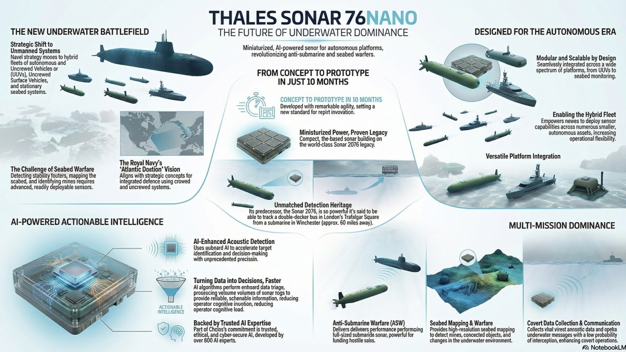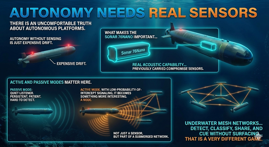中外舰闻 烽火问鼎计划 每天认识一件兵器 Thales Sonar 76 Nano声纳,计划用于装备各种无人载具,例如无人潜航器UUV和无人舰USV等。