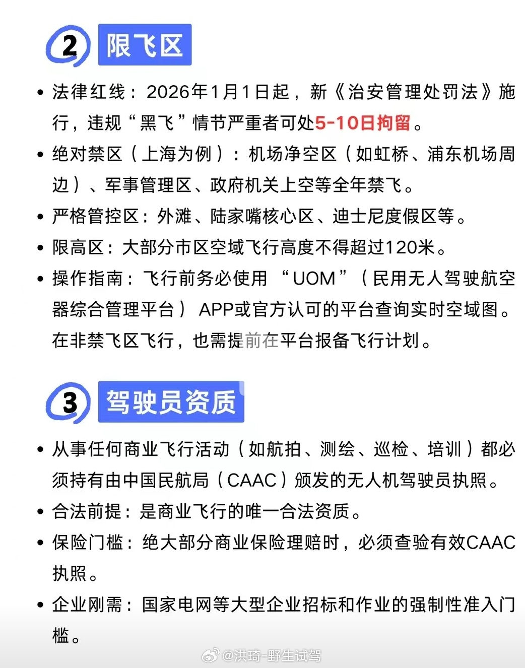 无人机新规,完善了新国标无人机要求,设置了过渡期,明确了红线(黑飞拘留)。但对绝大多数个人玩家影响不大,以后注意飞机去注册激活,个人考个CAAC证儿(以前发过网页链接),在大部分适飞区120米内都可以无报备飞行。那些个贩卖焦虑的十个有九个是让你花钱考证的