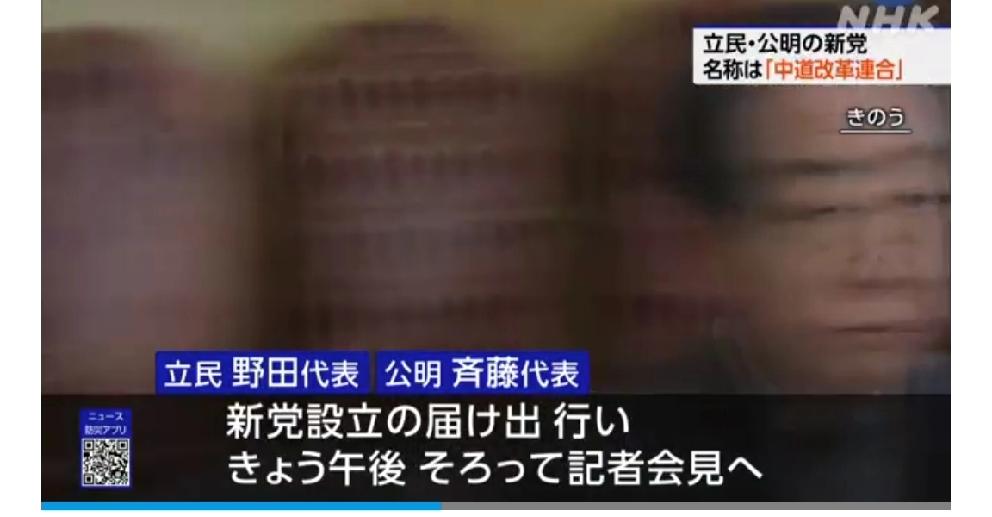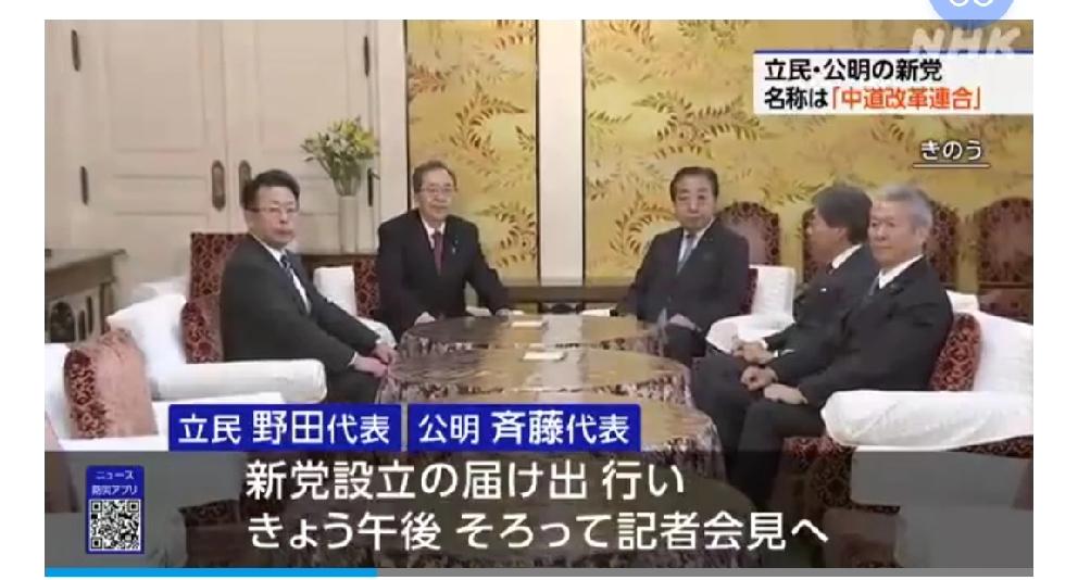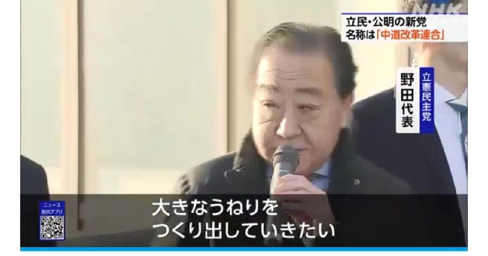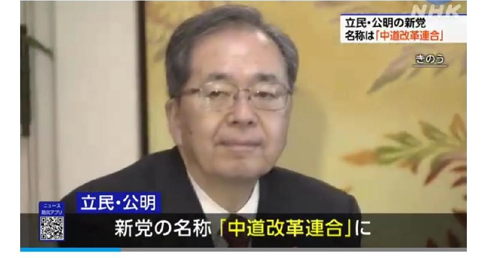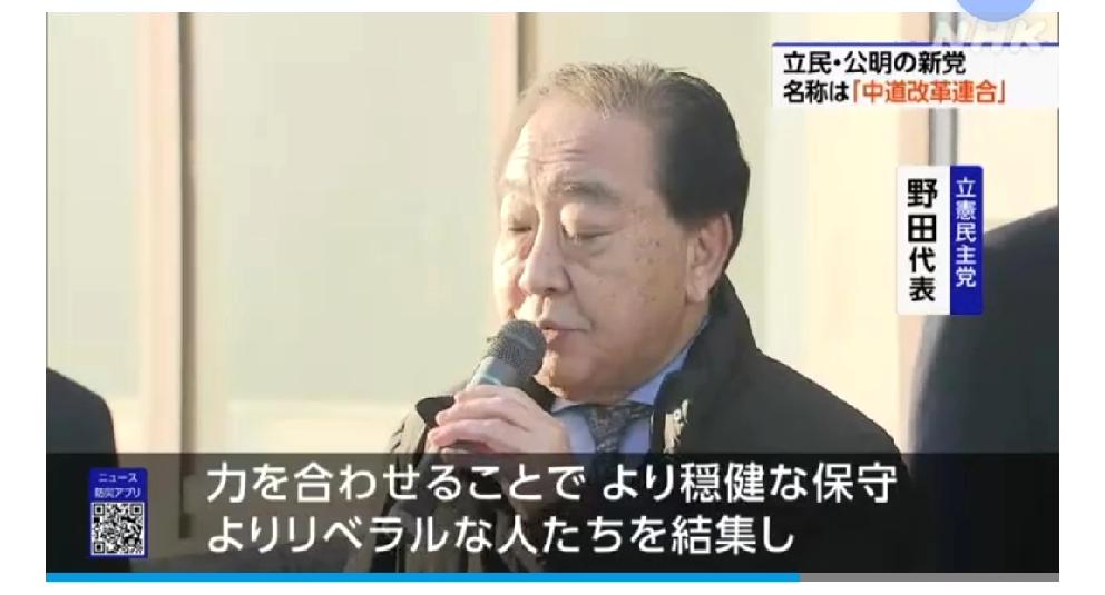 日本立民公明新党更名为“中间道改革联合” 日媒1月16日报道,立宪