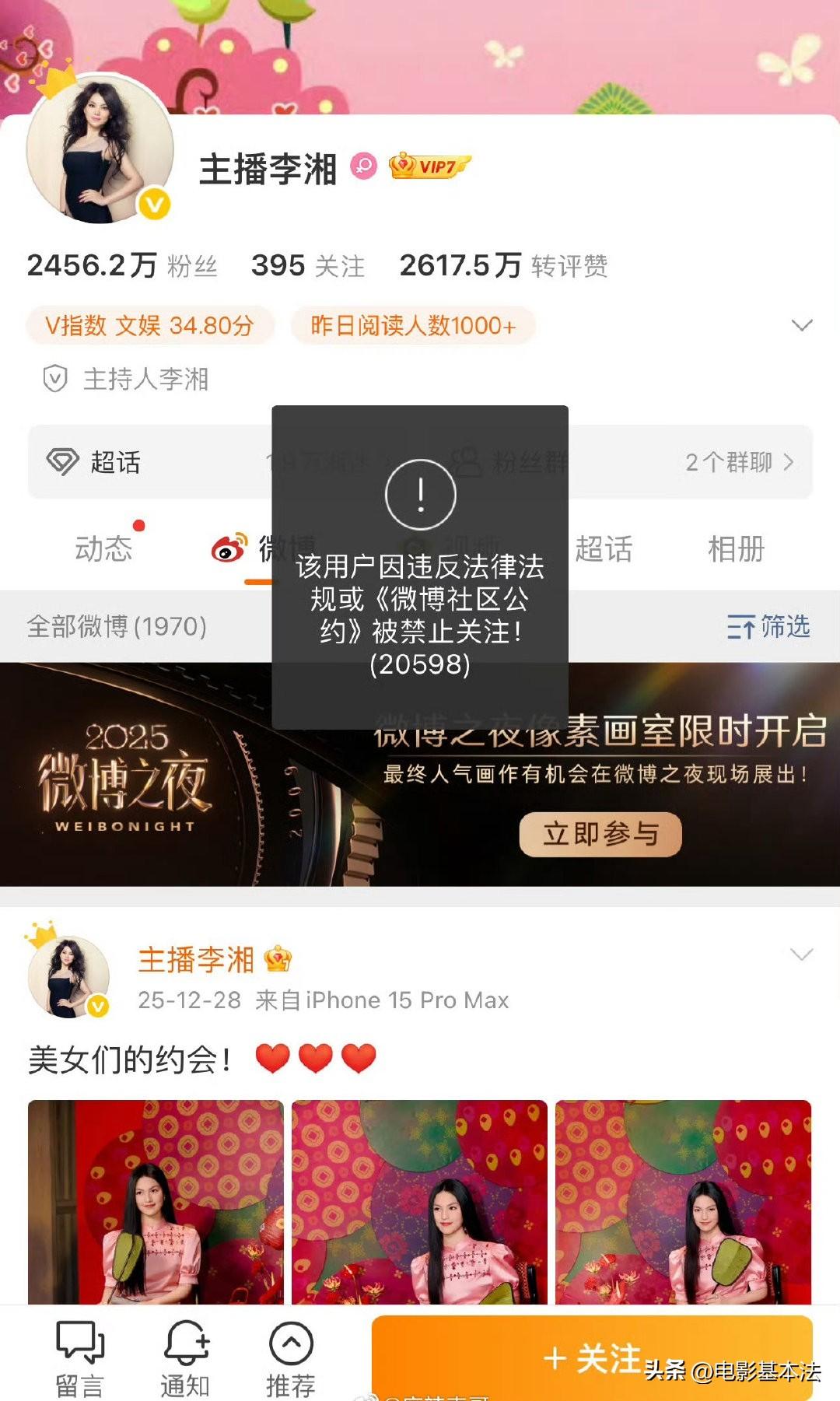 李湘凉凉了,目前她全平台账号已经被禁止关注,为什么会出现这种情况,无非就是以下几种可能: 第一,长期炫富,过于高调,挑动社会敏感神经,不利于和谐; 第二,前夫李厚霖已经出事,可能有所关联; 第三,是不是有相关违法线索已经被证实,即将公布; 有些网友觉得她早该被封杀了,也有人觉得她算不上炫富,只是在分享生活,那么你觉得呢,你认为李湘应该早被封杀吗?