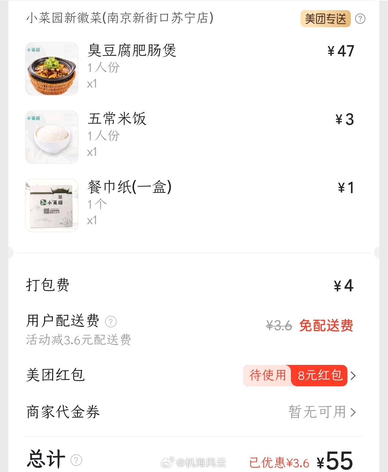阿里硬刚美团、誓夺市场第一的决心很大啊!小菜园同样的菜,同一家门店,淘宝闪购券后42块,美团外卖券后47块,你要是消费者,你选哪个?