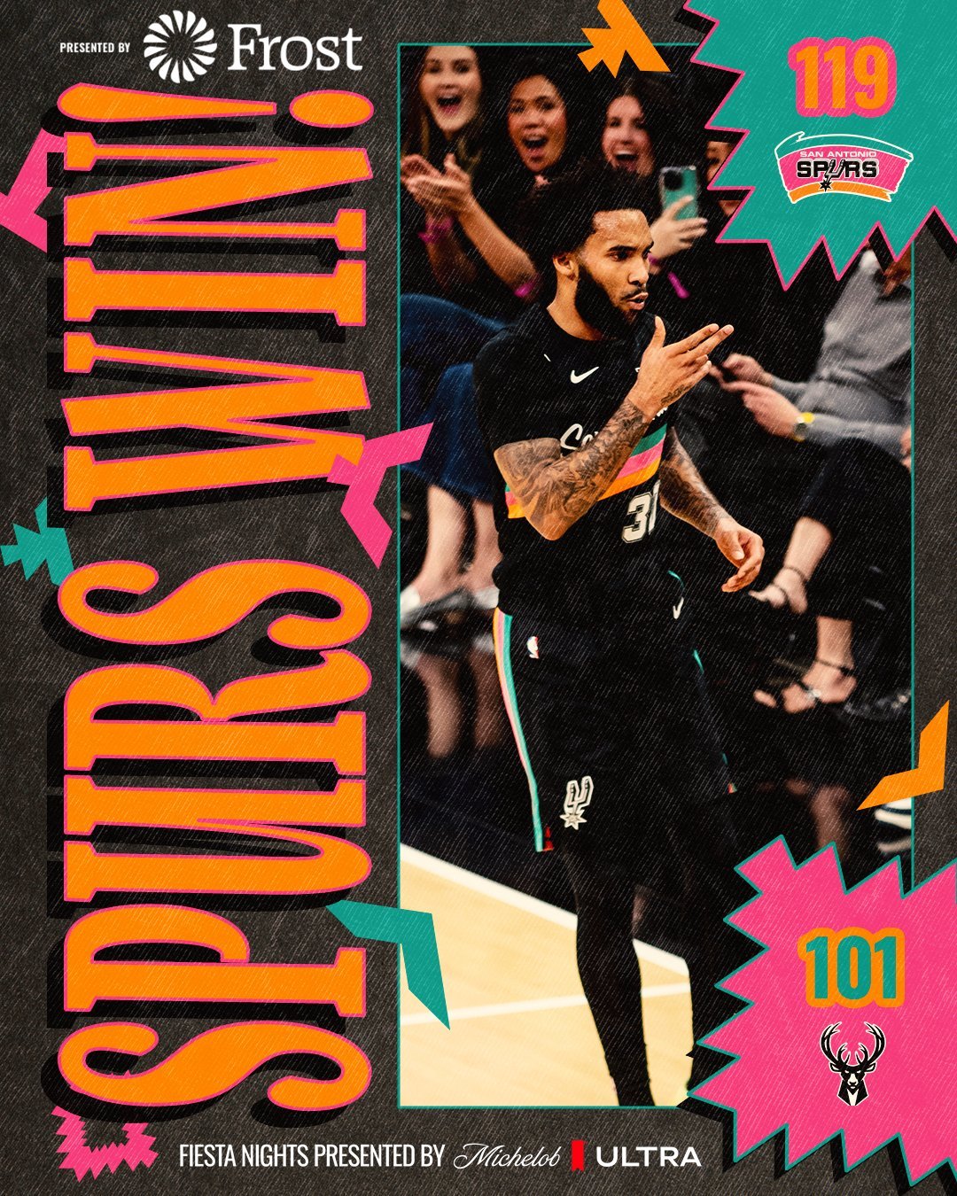 全场比赛结束!马刺主场119-101轻取雄鹿,结束两连败马刺(28-13):文班亚马22分10板1助2帽、卡斯尔19分1板10助、福克斯18分4板4助、尚帕尼13分11板1助、哈珀13分4板5助、科内特10分4板1助、凯尔登7分8板2助3断、巴恩斯6分3助、奥利尼克4分1助、沃特斯3分1板、布莱恩特2分5板、索汉2分1板、麦克劳林1板雄鹿(17-24):阿德托昆博21分5板1助2断、库兹马18分3板2助、波蒂斯13分6板3助、安东尼7分3板1助、科菲7分2板、杰克逊7分、罗林斯6分7板7助、AJ·格林6分1助、特纳5分3板3助、哈里斯3分2板、特伦特3分1助、南斯2分1板、T·阿德托昆博2分1助、希姆斯1分4板1助、波特1板2助马刺下一场将在1月18日主场迎战森林狼来马刺超话,参与球员评分超话创作官 |篮球年末狂欢季 |马刺战胜雄鹿
