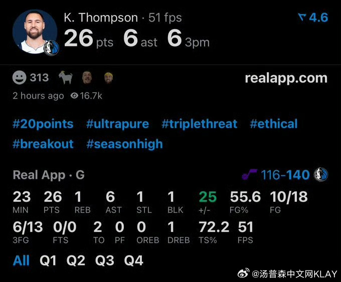 克莱·汤普森今晚26 分(赛季新高)6 助(赛季新高)10-18 投篮命中(赛季新高)6-13 三分命中(赛季新高)+25(赛季新高)升至历史三分命中数第四 🐐——————今天是个好日子,各位汤黑中午多吃点汤普森克莱汤普森克莱汤普森