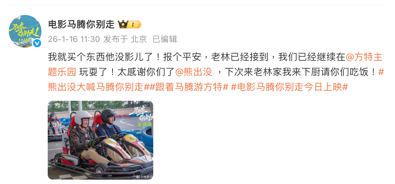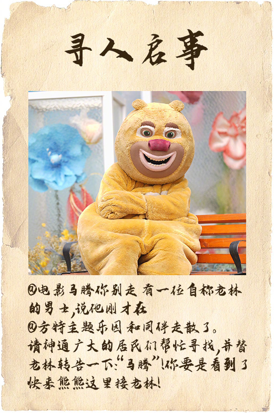 熊出没大喊马腾你别走《马腾你别走》竟然和《熊出没》联动了老林在熊熊老家走失,熊熊发寻人启事喊马腾带老林回家,有爱可爱电影马腾你别走今日上映