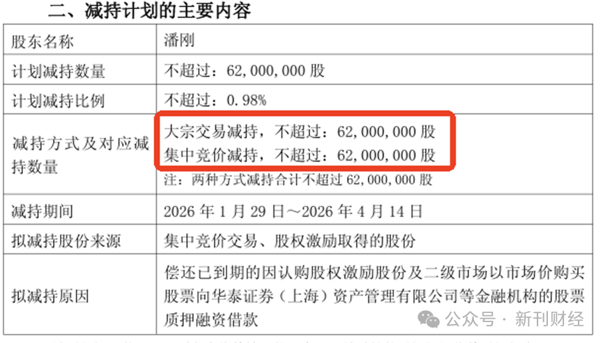 潘刚的持股之路始于股权激励。2013年6月,他通过股权激励一次性获得5428万股,成本仅6.49元/股,持股比例跃升至3.08%。此后在2014年、2019年,他又先后通过股权激励与二级市场增持,将持股量提升至约2.87亿股,成为公司第三大股东。这些增持的背后,是巨额的资金投入:三次累计投入超17亿元,与本次计划减持还款额高度匹配。