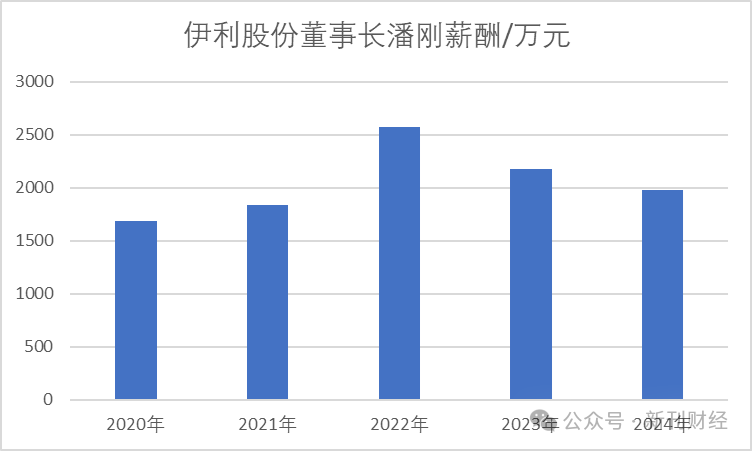 此外,潘刚不仅是伊利股份的核心掌门,也是A股市场少有的千万年薪董事长之一。数据显示,2024年其薪酬达1974.22万元,在五千余家上市公司中排名第四。历史来看,其近五年的薪酬也均超过千万,并曾在2022年度达到2573万元的阶段性高峰。