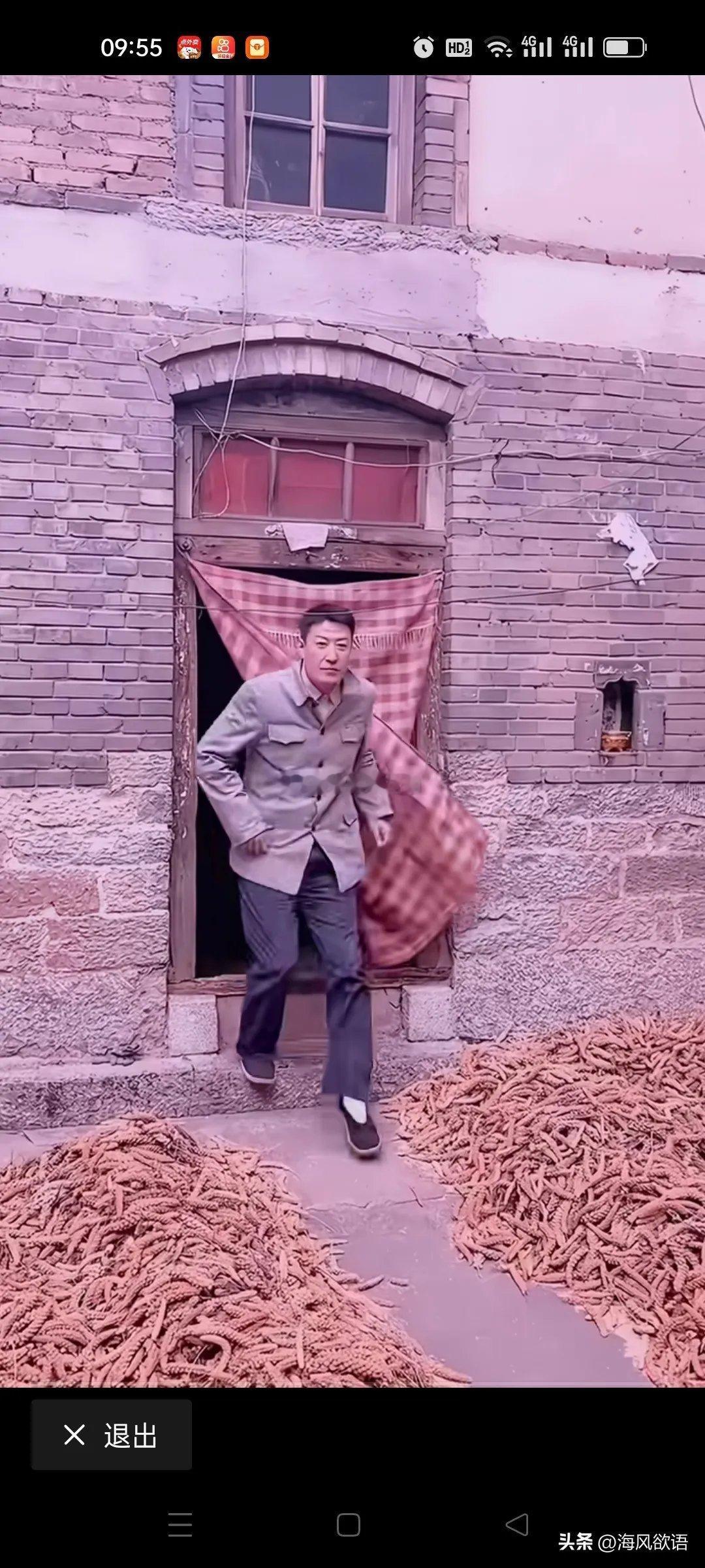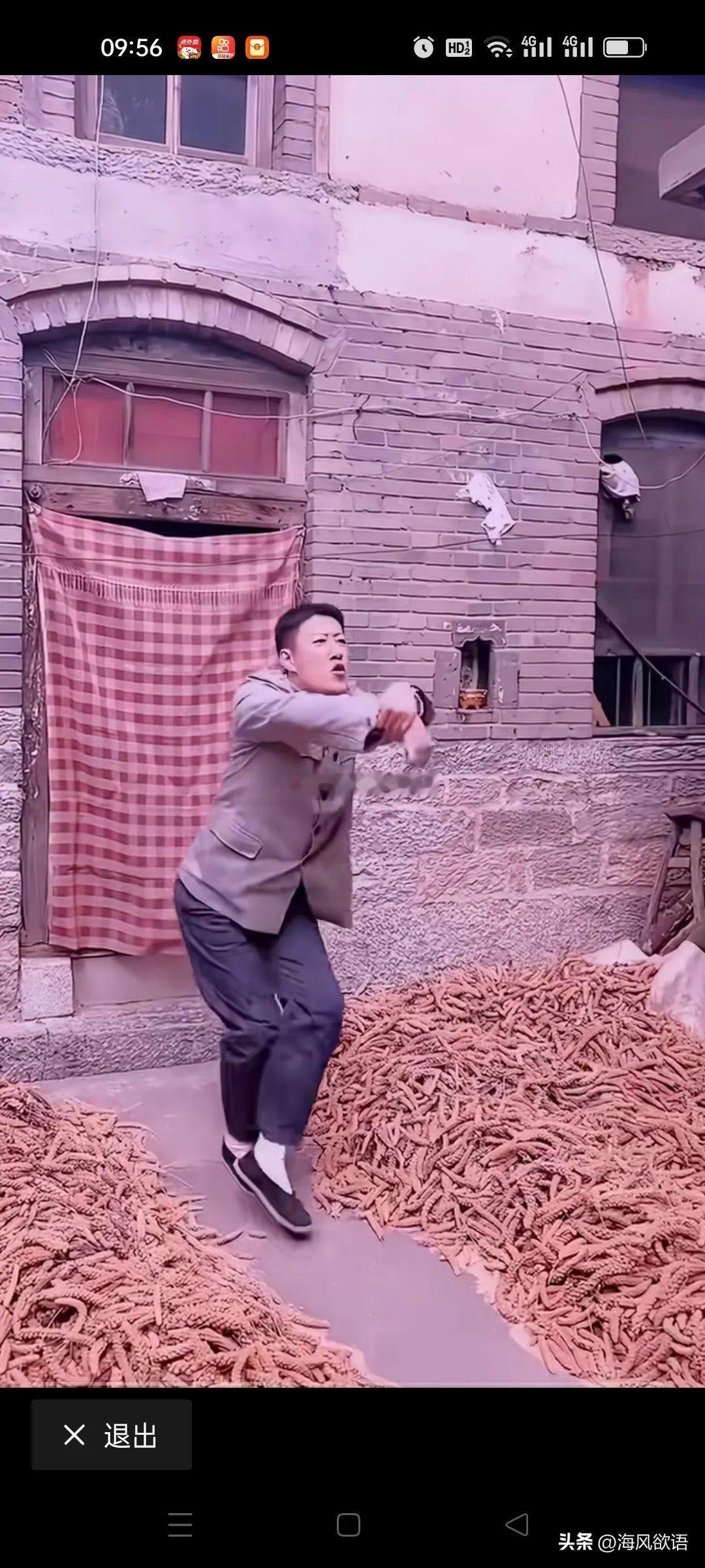 于震这波操作真把我笑喷了!穿件灰布中山装,配着宽腿裤和黑布鞋,往老砖房门口一站,红格子门帘、满地玉米棒子,一下子就让人穿越回七八十年代的胡同小院。他在院里手舞足蹈地比划,一会儿模仿骑车,一会儿假装摔倒,那股憨劲儿跟荧幕上的硬汉形象反差超大。旁边大哥捧着碗蹲在门槛上笑到直不起腰,画面太接地气了!不用端着明星架子,就像个没心没肺的老顽童在烟火气里撒欢,看得人忍不住跟着乐,这才是真正的快乐老家嘛!