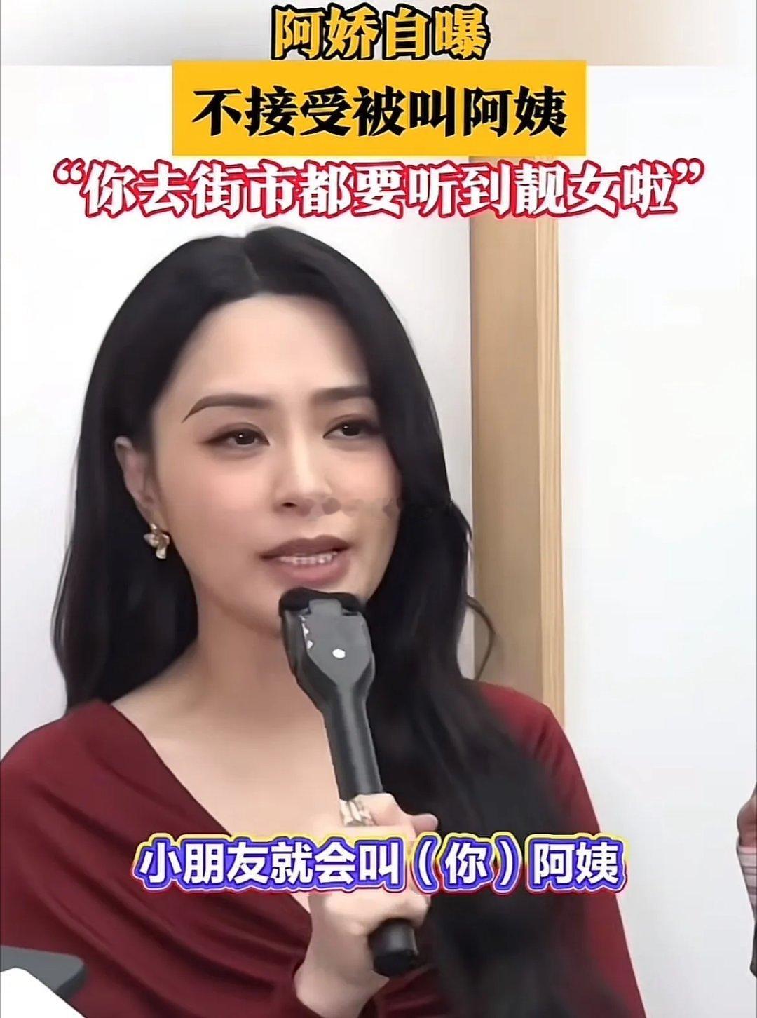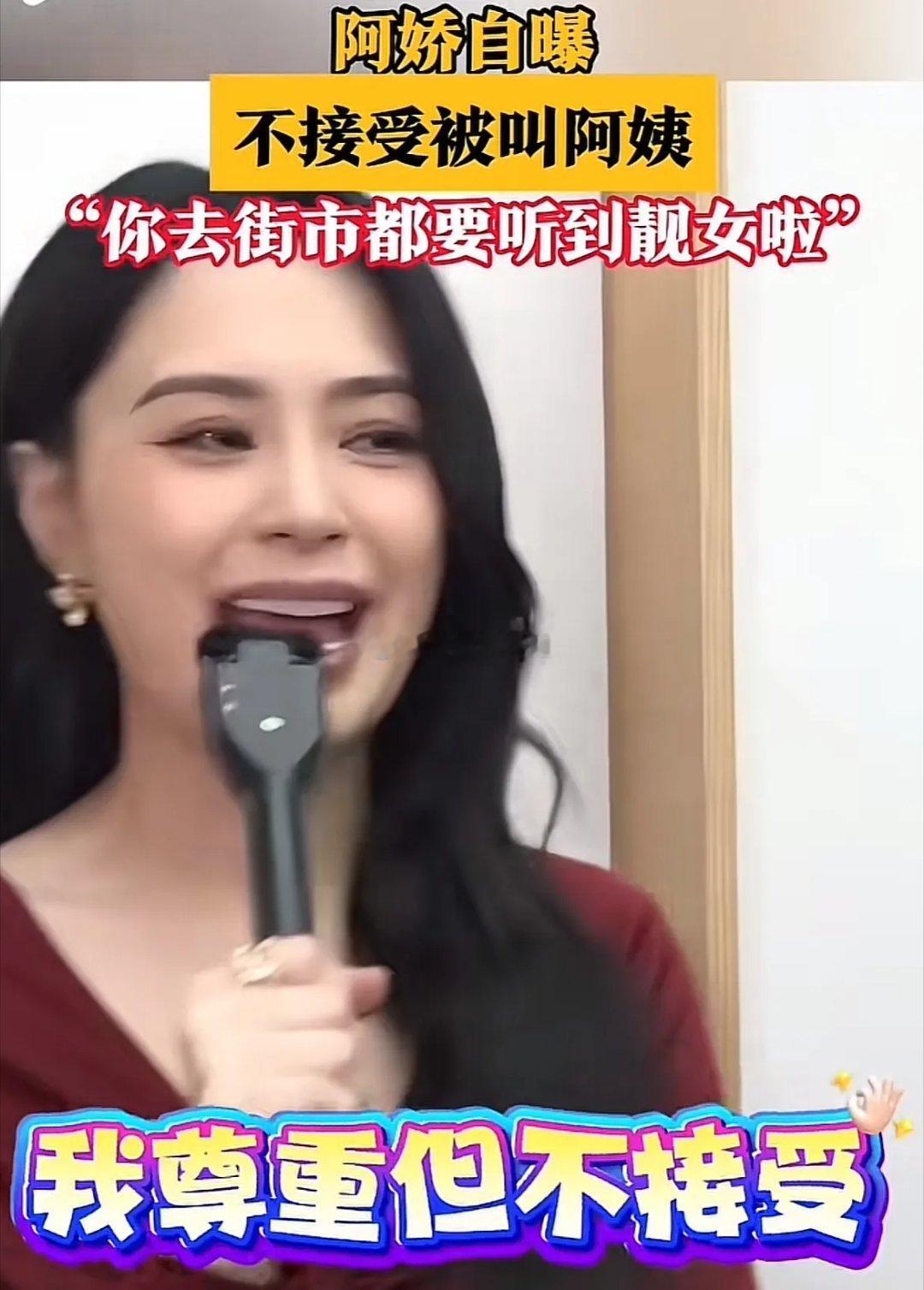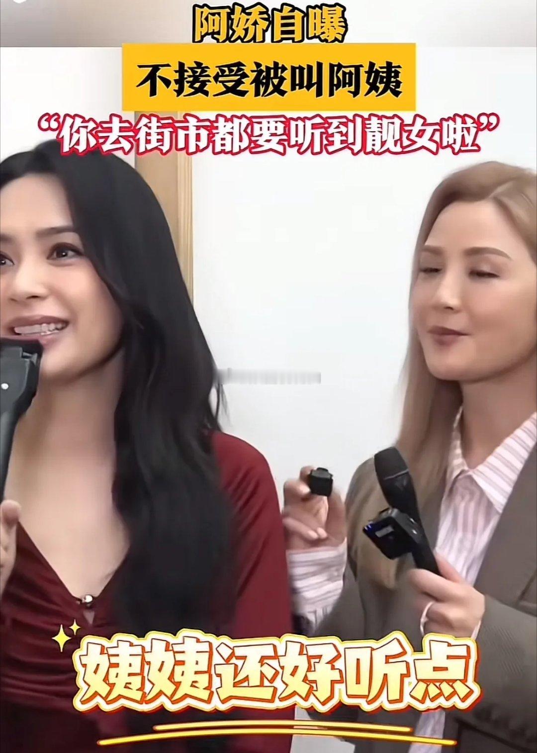 记者问阿娇:“是不是之前有人叫你姨姨。你不喜欢?”阿娇说:“不是姨姨啊,是阿姨。姨姨都好听点,因为你过了二十多岁,小朋友就会叫你阿姨。”阿SA说:“人家十几二十岁才叫姐姐。”阿娇说:“但是我不接受,我尊重但是我不接受。”记者还问是不是喜欢别人永远叫你姐姐,阿娇比喻说你去买菜人家都是叫“靓女”的。