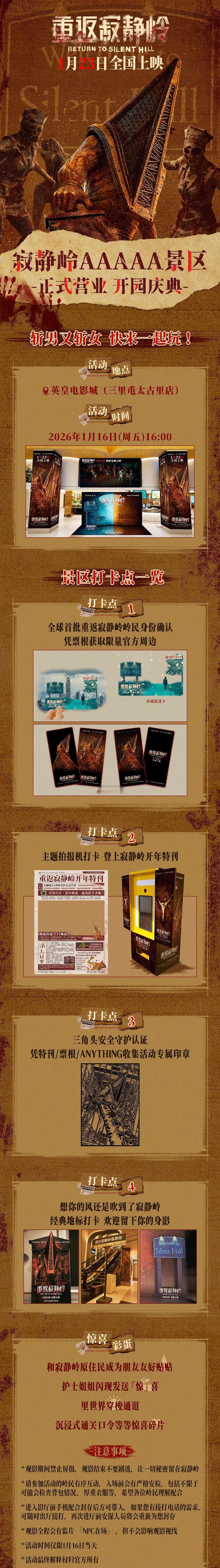 上海迪士尼爆改寂静岭电影《重返寂静岭》今天宣布在北京超前观影,上海同步进入寂静岭大雾模式,迪士尼直接爆改哑巴屯里世界形态,官微还跑出来温馨提醒大家雾天出行注意安全……网友:你们这是联动了吗?看来1月23号真得去电影院重返寂静岭了!