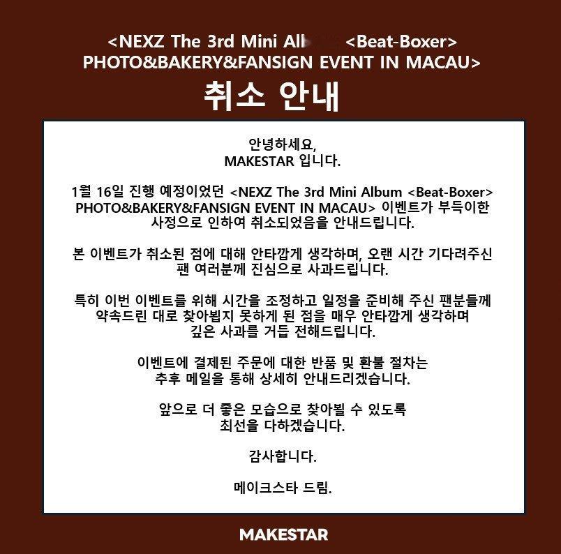 JYP NEXZ中国澳门粉丝签名会&演唱会通知取消