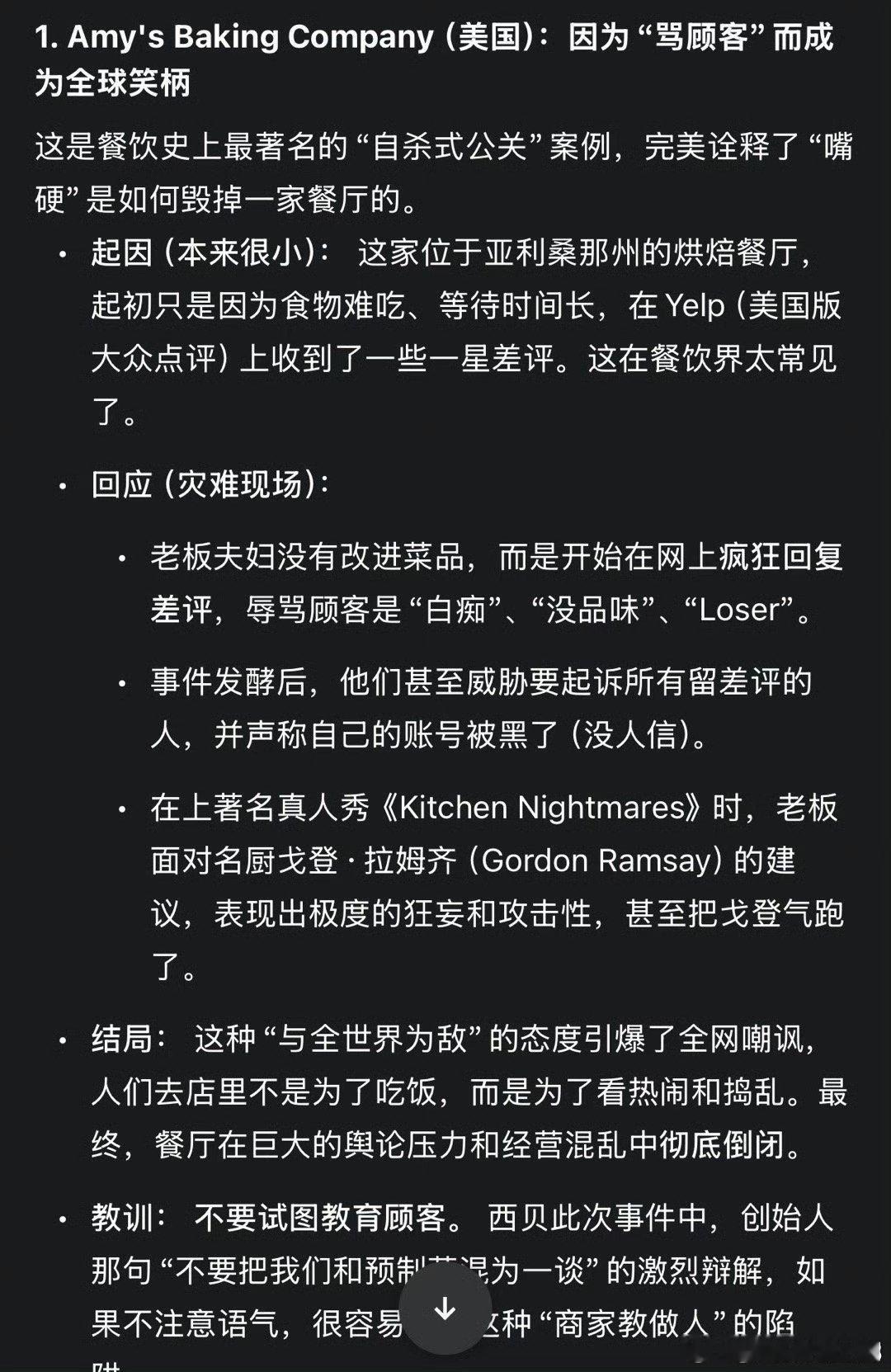 俗话说“和气生财”。商家要把消费者当做服务对象,真诚相待,以礼相待。不要用教训孩子的方式教育消费者。遇到了麻烦,要学会内省,直面自身存在的问题,而不是把过错一股脑推到消费者身上。遭到误解,或者受了委屈,能保持定力,和颜悦色的与人交流、沟通,就能避免很多口舌之灾,至少能有效避免态度的灾难 发生。西贝将关闭102家门店贾国龙朋友圈称尽力了