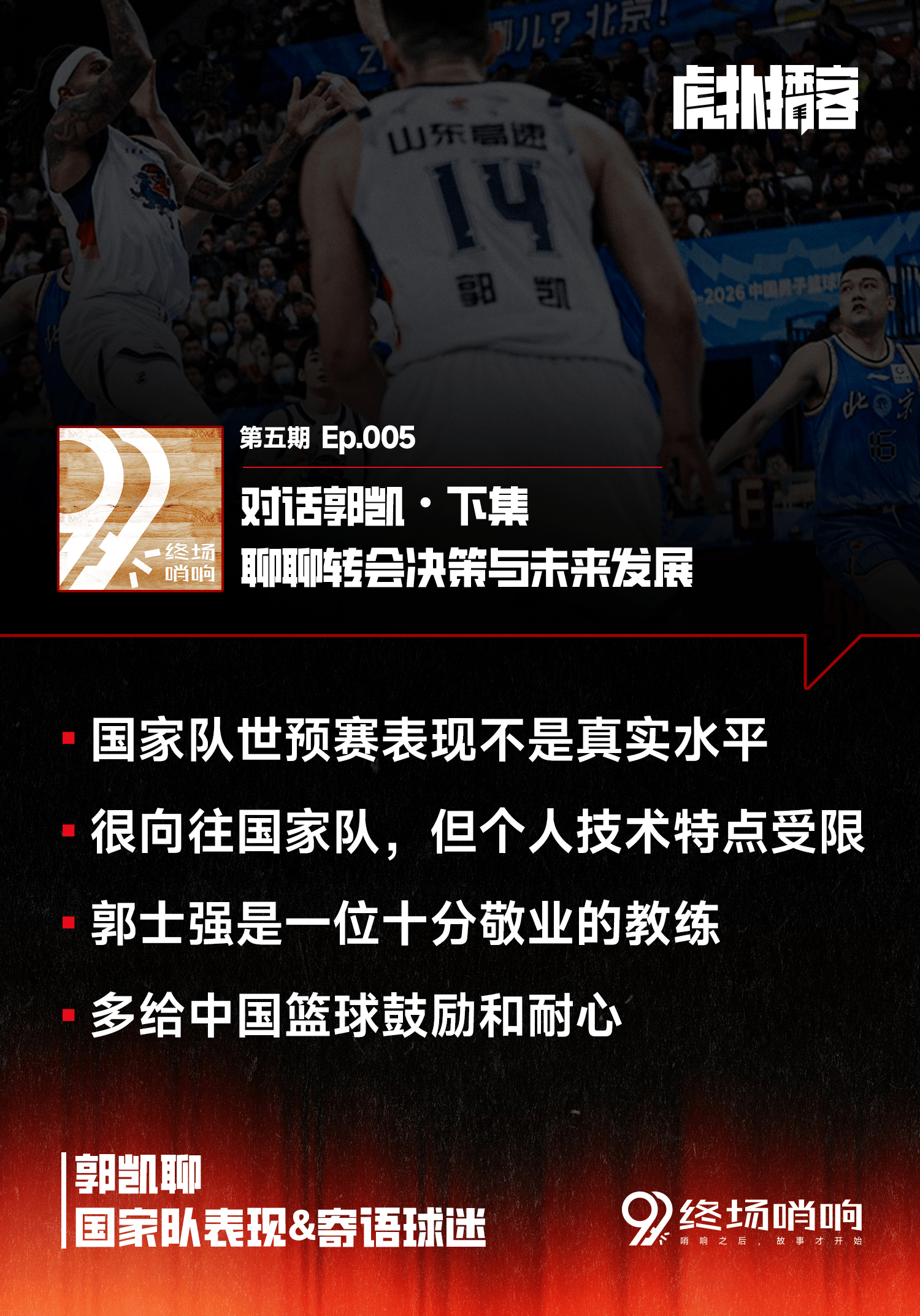 播客最后,郭凯也是寄语球迷,希望大家能够多给中国篮球一些鼓励和耐心。