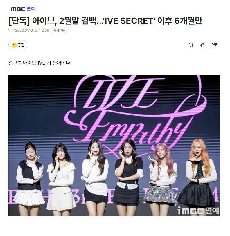 IVE将于2月底回归 自去年8月发行迷你4辑《IVE SECRET》以来时隔6个