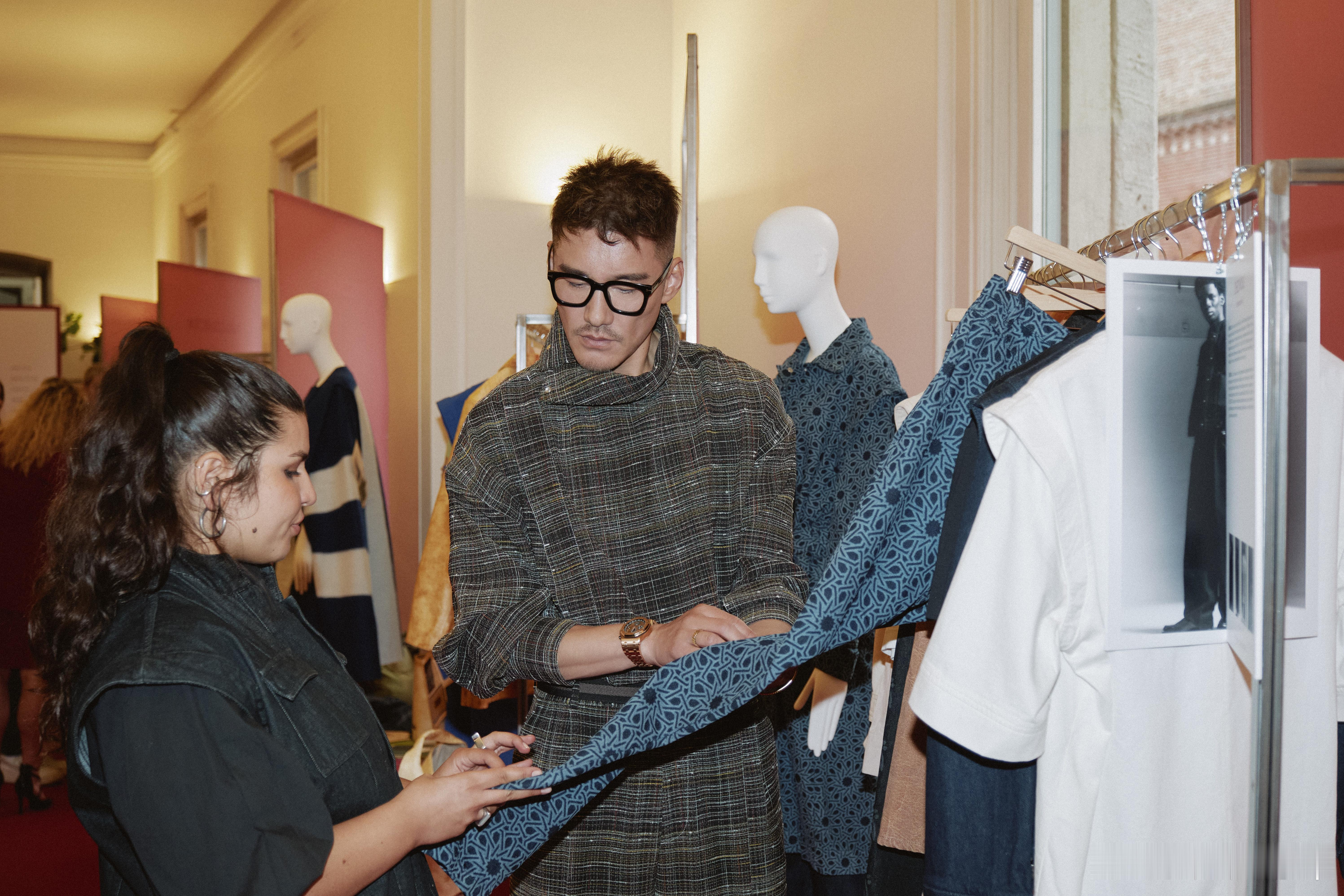 胡兵给阿布扎比上点东方震撼 建议阿布扎比把胡兵的气场列为城市宝藏!香云纱+零浪费剪裁,硬生生把沙漠秀场变成东方美学发布会,贵气值直接拉满到天际。
