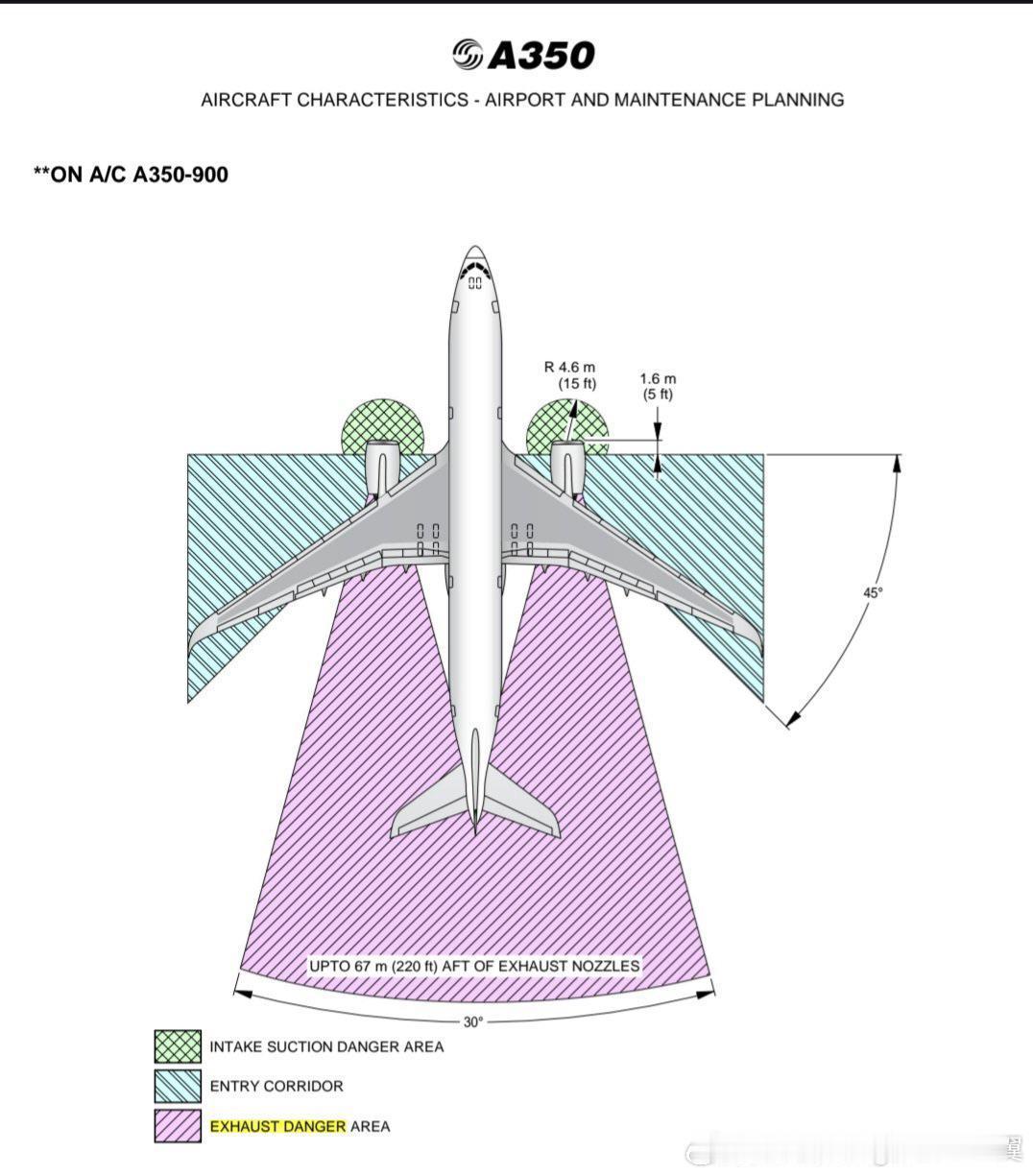 1月15日,印度航空一架空客A350-900客机(注册号 VT-JRB)在德里英迪拉·甘地国际机场滑行时,其右侧发动机吸入了一个散落的行李货运集装箱,导致发动机严重受损。航空创作计划 用于A350-900的Trent XWB-84单台价格为2500-3000万美元。如果发动机风扇叶片或核心机严重受损,维修费用可能高达数百万美元甚至接近更换整台发动机的成本。A350-900在地面发动机运转时的进气道危险吸入区域,为每台发动机前端4.5米半径的范围。