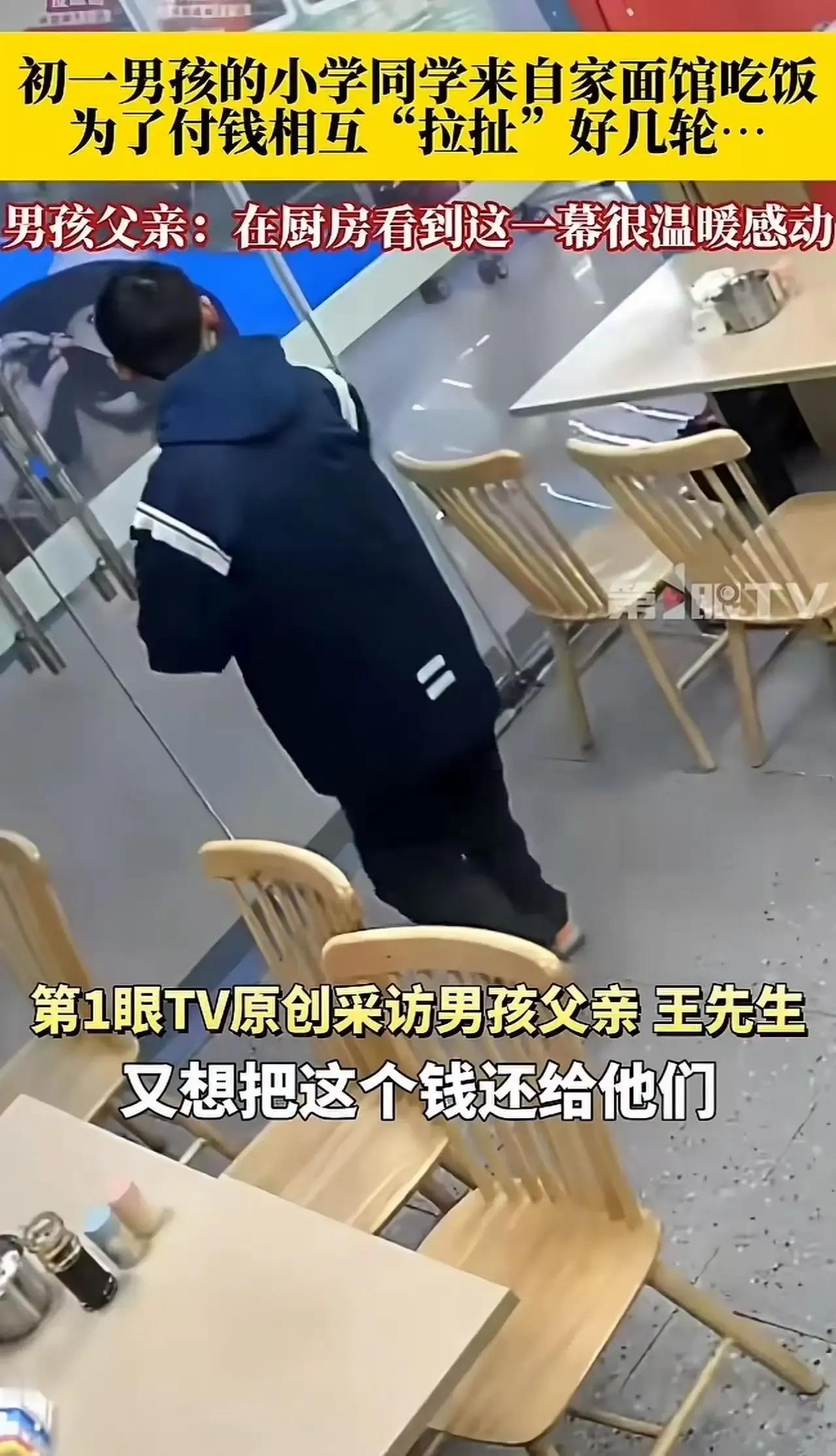 几个初中男生,给全网上了一堂“人品课”!初一男孩的小学同学们,来自家面馆吃饭,为了付钱,相互“拉扯”好几轮!让人看着看着就泪目了!网友:什么是兄弟?兄弟是相互托举,而不是占便宜! 这群初中男生,用最真实的行动,诠释了什么叫“人品”。他们不是在课堂上学到的“道德规范”,也不是靠父母的叮嘱,而是在日常生活中,用点滴细节,向我们展示了真正的兄弟情谊。 故事发生在一家面馆里。几个刚刚步入青春期的男孩,围坐在桌子前,脸上带着稚嫩又认真的表情。饭吃完了,轮到付钱的时候,气氛变得微妙起来。原本大家都在笑着,突然就变得紧张起来——谁来付?谁该多付一点?于是,他们开始“拉扯”起来,笑着、闹着,像极了电影里兄弟间的打闹场景。可是,谁也没有占便宜,也没有耍心眼。 这场“拉扯”持续了好几轮,直到其中一个男孩主动站出来,说:“我来吧。”他的眼神里,没有炫耀,也没有占便宜的得意,只有一种责任感和信任。这一瞬间,仿佛时间都静止了。那一刻,他们用行动告诉我们:兄弟,不是比谁多占便宜,而是在你需要时,愿意伸出手,托起对方。 网友们看完这个故事,纷纷感慨:这才是真正的“人品课”。在这个充满功利和攀比的时代,能有这样纯粹、真诚的友谊,实在难能可贵。有人说,兄弟之间的关系,就是在你最困难时,愿意陪你扛起一切的人。而这几个男孩,用最简单的方式,践行了这个道理。 更让人感动的是,这样的场景并不稀奇,只是我们平时太忙,忽略了身边的温暖。其实,兄弟情,就藏在生活的点滴中:一句关心的话,一个愿意为你付出的行动,甚至是一场简单的“拉扯”。这些看似微不足道的小事,却最能折射出人性的善良和纯粹。 我们常常在大事件中寻找感动,却忽略了身边那些细微的善意。也许,真正的“人品”就是在这些不起眼的瞬间,展现出最本真的自己。希望每个人都能像这几个男孩一样,守住那份纯粹和善良,让“兄弟情”成为我们这个时代最美的风景线。 读完这个故事,你是不是也在反思:我们是否还记得,曾经那份纯真的友情?在这个充满竞争和压力的社会里,或许我们更需要的,是那份简单而真挚的“人品”。毕竟,真正的兄弟,是在你最需要时,愿意拉你一把的人,而不是占便宜的“伙伴”。让我们都从身边的小事做起,用行动去诠释那份最纯粹的善良和责任感。人品 细节展现人品