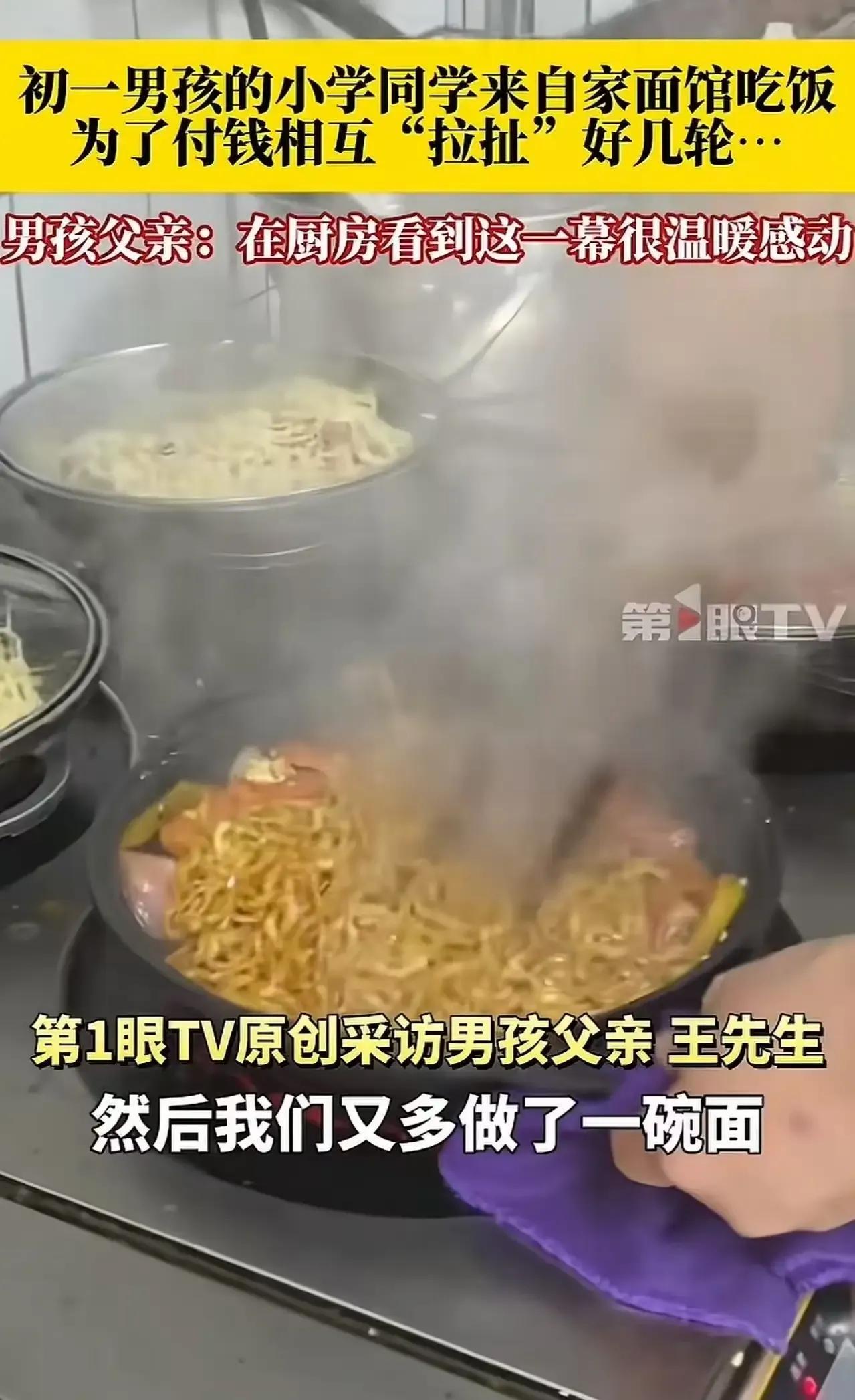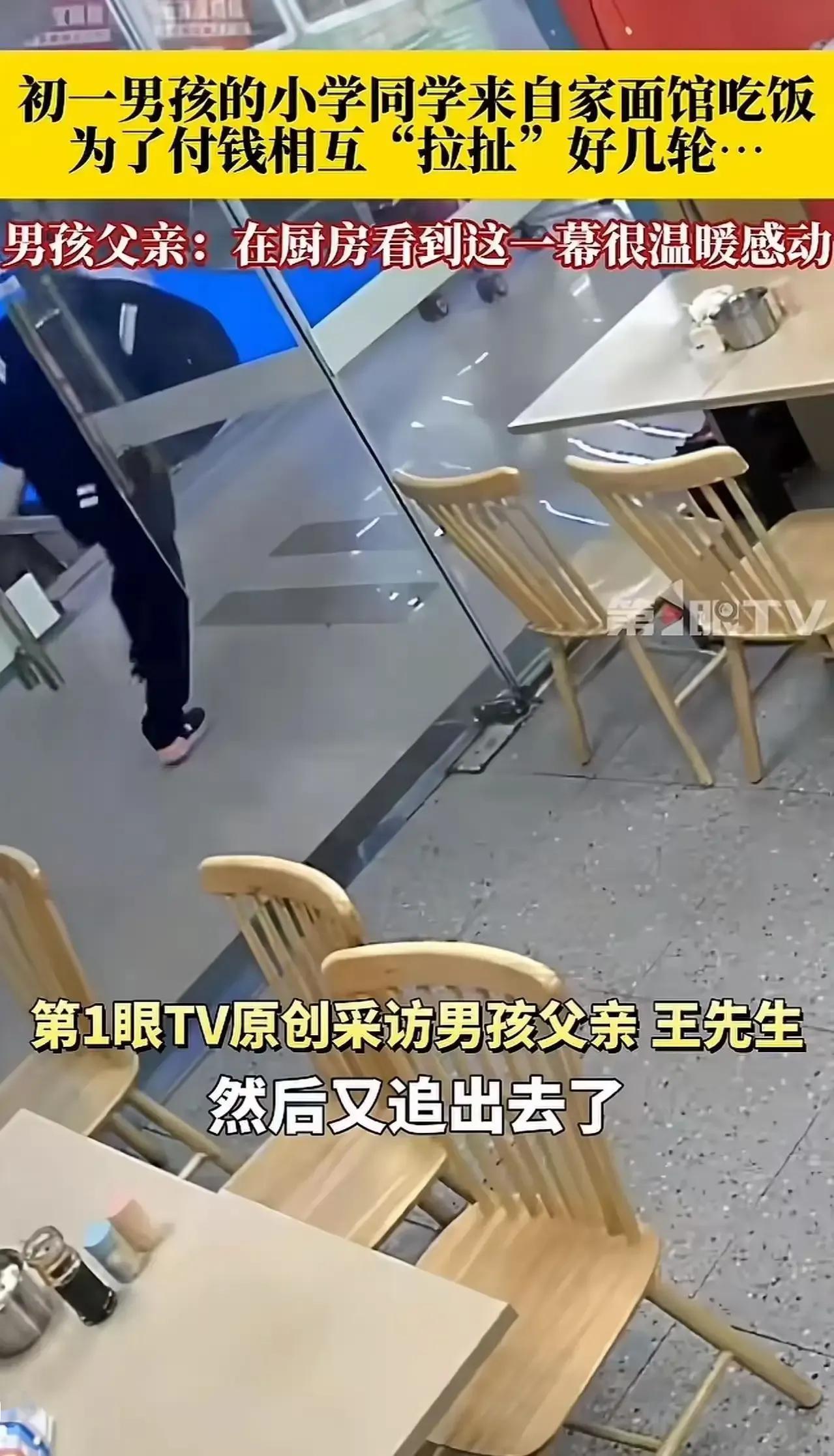 几个初中男生,给全网上了一堂“人品课”!初一男孩的小学同学们,来自家面馆吃饭,为