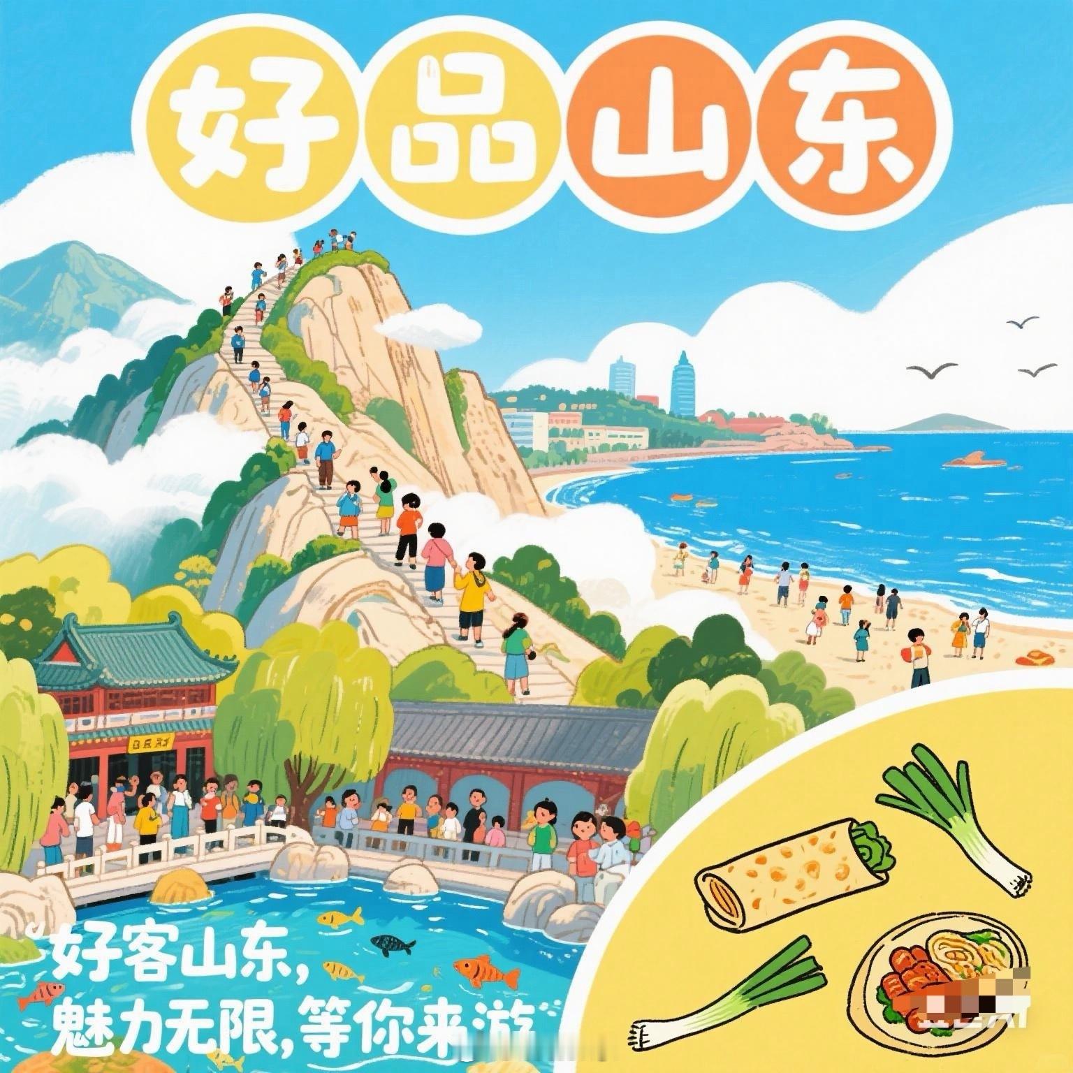 好品山东山东不仅是经济大省,更是文化强省,处处彰显着蓬勃的正能量。给外地的粉丝来个小科普:山东是中华文明的重要发祥地之一,儒家文化的发源地。孔子、孟子等圣贤的思想,如明灯照亮历史长河,“仁义礼智信”的价值观深入人心。如果你去了山东会发现,山东人将这些传统美德融入生活,公交车上主动让座、邻里间互帮互助,处处充满温情。还有一点,山东的旅游资源丰富多样,“好客山东”品牌闻名遐迩。泰山,雄伟壮丽,吸引无数游客前来攀登,感受“会当凌绝顶,一览众山小”的豪迈;青岛的海滨风光旖旎,红瓦绿树、碧海蓝天,让人流连忘返 ;淄博烧烤火爆出圈,让全国人民感受到山东人的热情豪爽 ,成为城市文旅融合发展的典范。