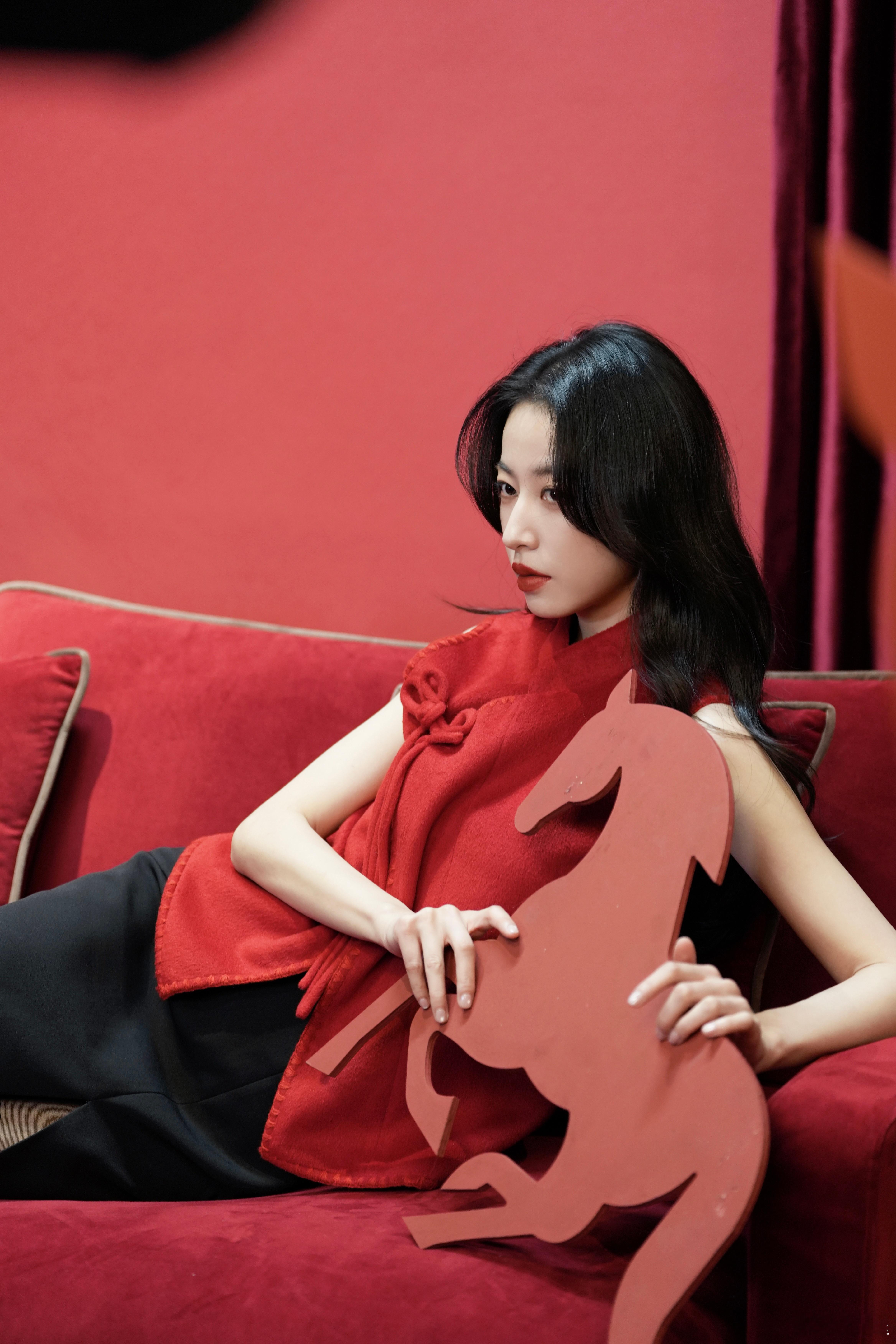 白鹿红裙造型封神!红黑光影下美成人间富贵花!白鹿这组红裙写真直接美到失语!一