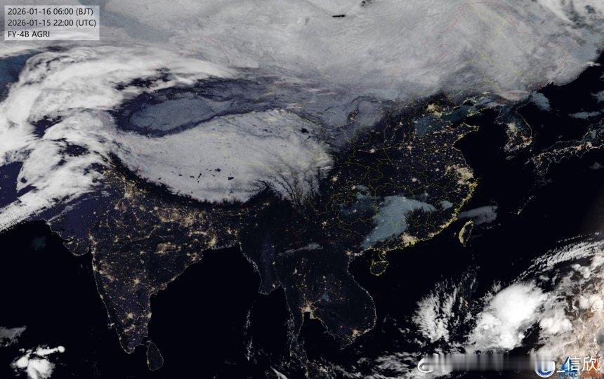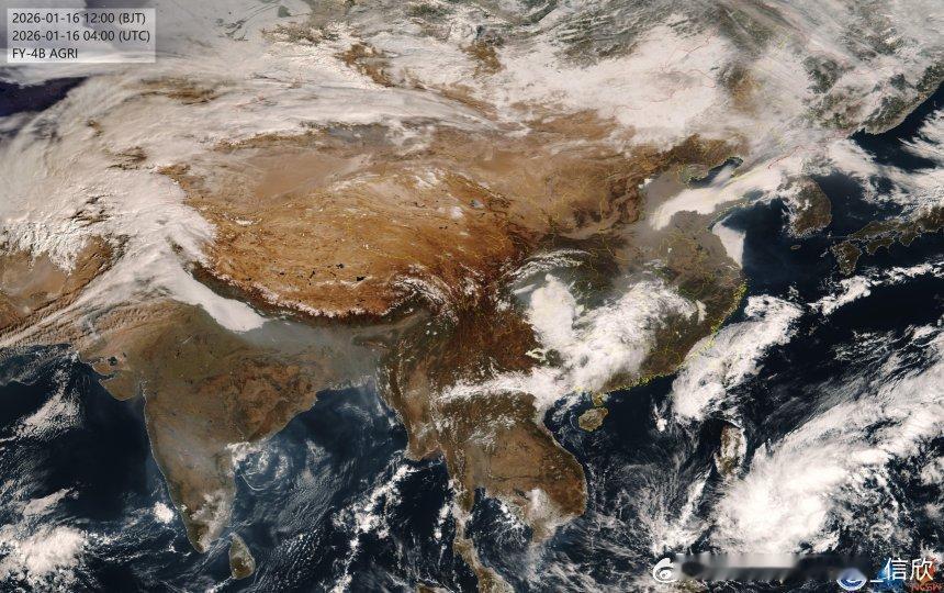 【卫星上虚假的云】对比今晨和中午的卫星云图,在青藏高原上,可见红外云图反演出虚假的云。白天采用可见光云图后,青藏高原是大片晴空。因为在日出前,没有光照,采用红外成像,根据温度反推:一般云的高度高,云顶温度比地表低。越冷,显示也就是越白亮。但冬季青藏高原,夜间强烈的辐射降温,使得地表温度低,低得和云类似,就被红外云图反演成和云一样的效果。但这个虚假的云是不会动的,所以看云图动画也可以甄别出来。类似的是,还有西伯利亚,冬季因为寒冷或者地表有积雪,也会在夜间反演出大量的虚假云,日出后,其实是晴空。