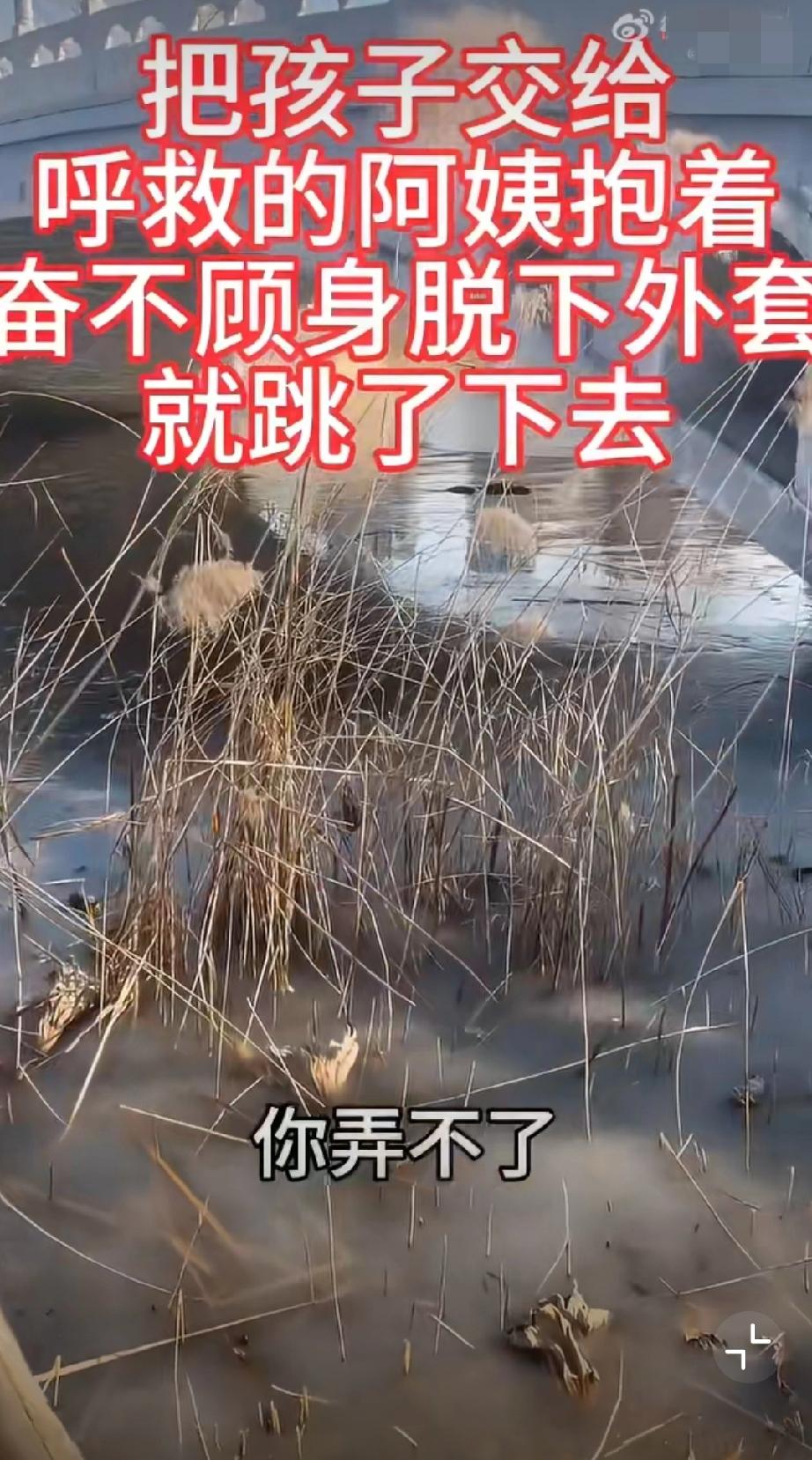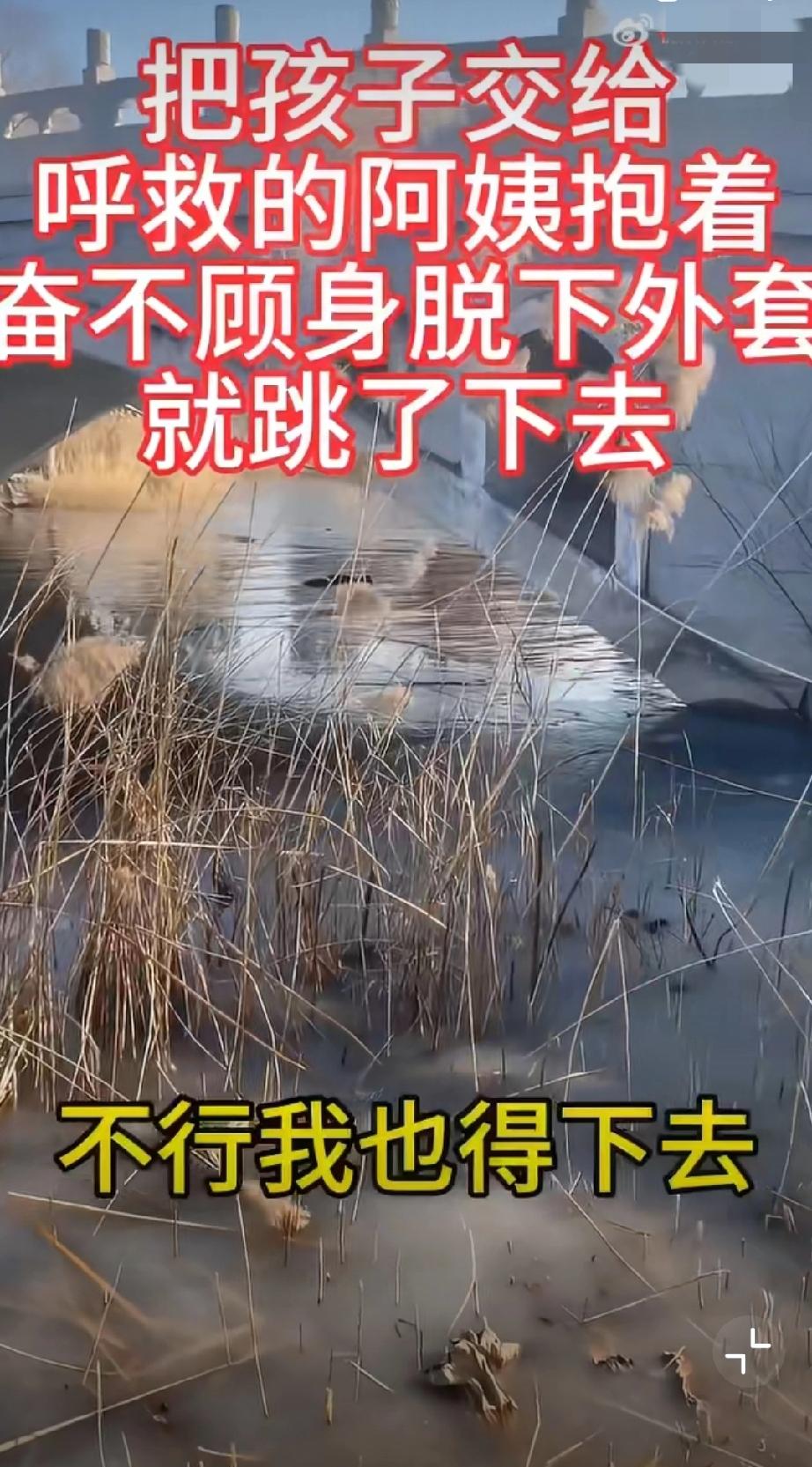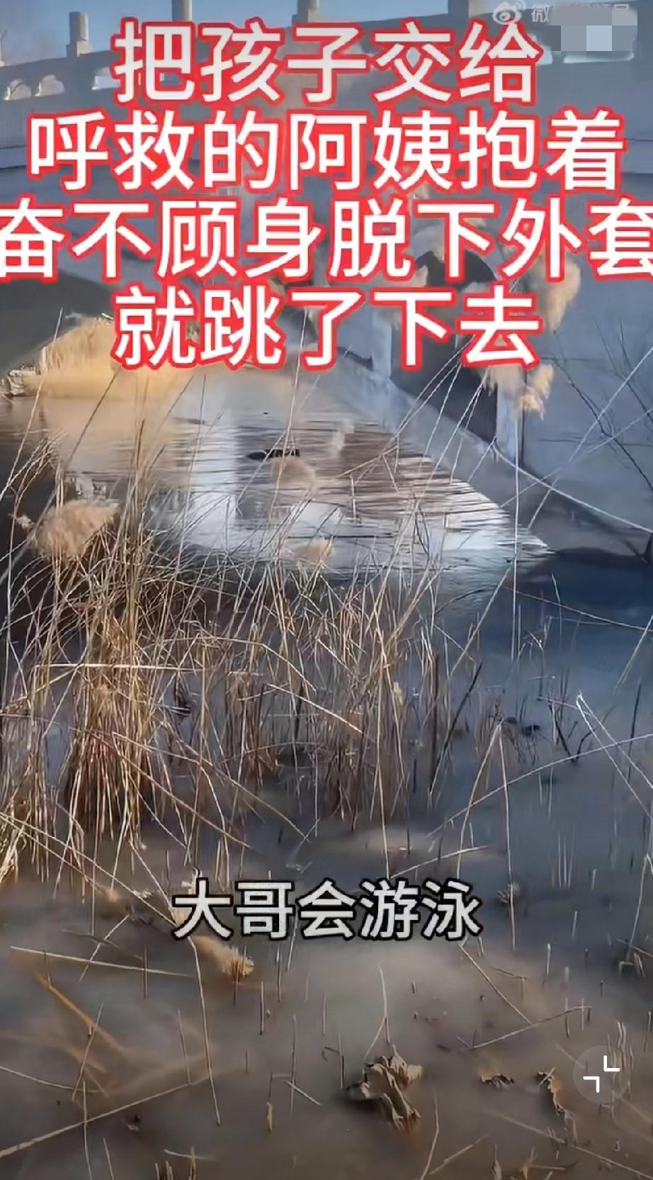 近日天津,孩子落水情况危急,好心大哥脱下外衣奋不顾身跳入冰水救人,众人合力成功救