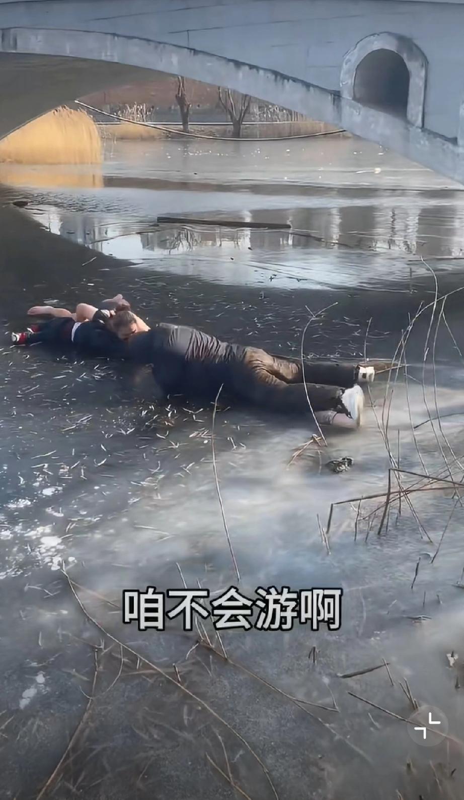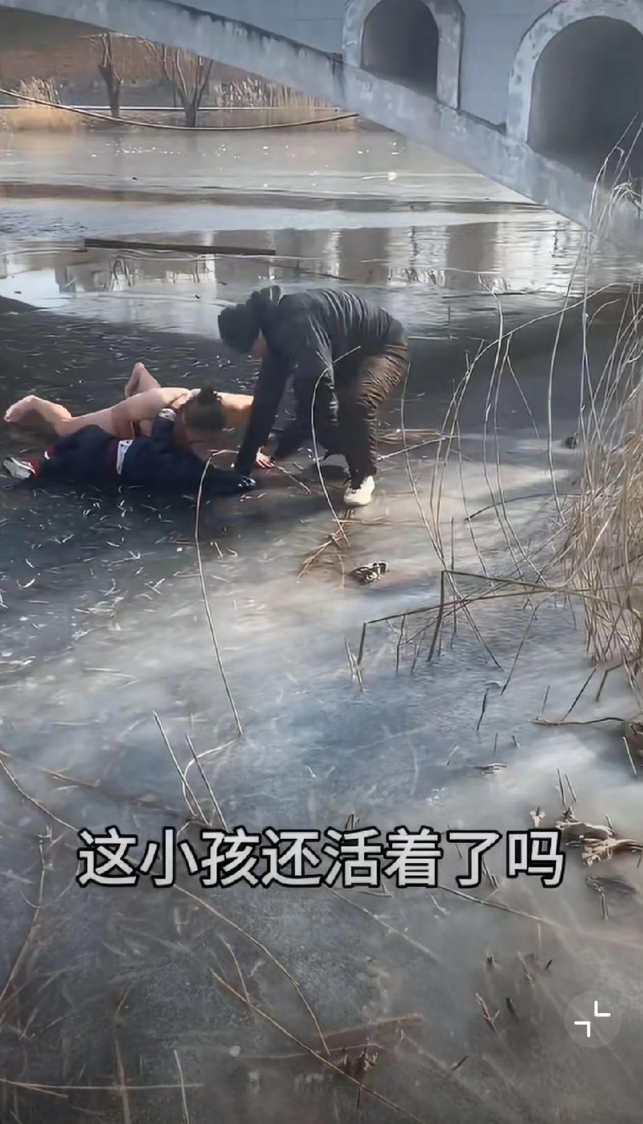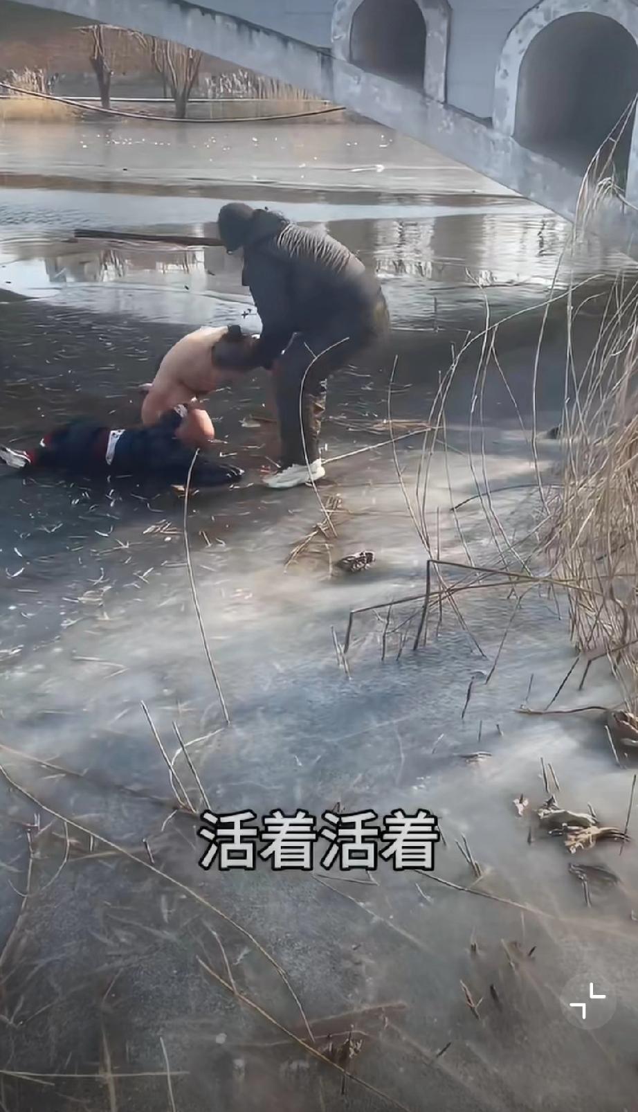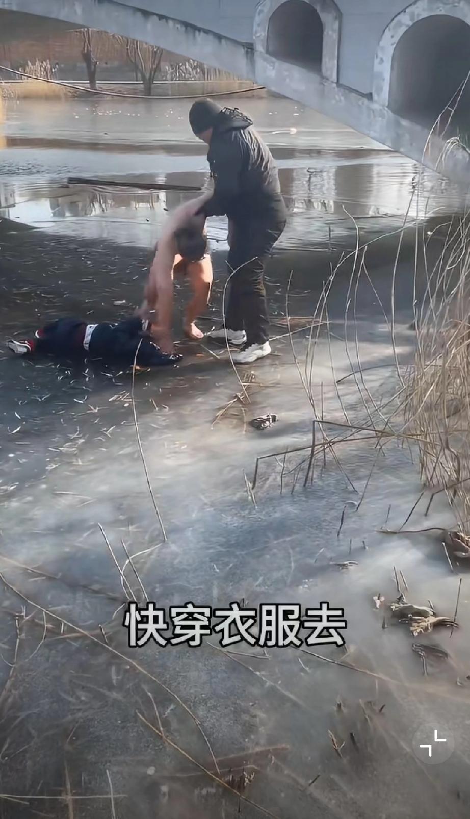 近日天津,孩子落水情况危急,好心大哥脱下外衣奋不顾身跳入冰水救人,众人合力成功救