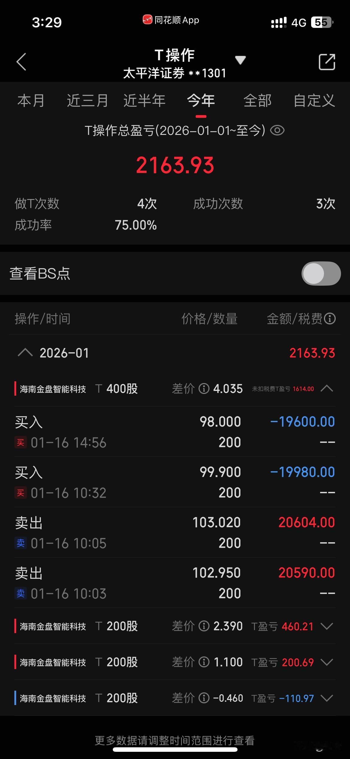 今天大盘维持震荡整理走势,个股涨少跌多。电网设备高开低走,追进的散户大部分入套。我早盘也追了400股特变。今天金盘也是高开低走,我操作非常成功,做了个T。早盘103块左右卖出下午99.9及尾盘分仓买回。特变死守收盘跌2个多点。天融信割肉卖出亏1千多,总结教训以后不再买这样的股票。特变我并不担心,基本面优秀,估值较低,电网设备龙头,今年业绩确定性很强,不开启主升浪就做分仓高抛低吸降低成本。今天红了4百,远低于预期[捂脸]。