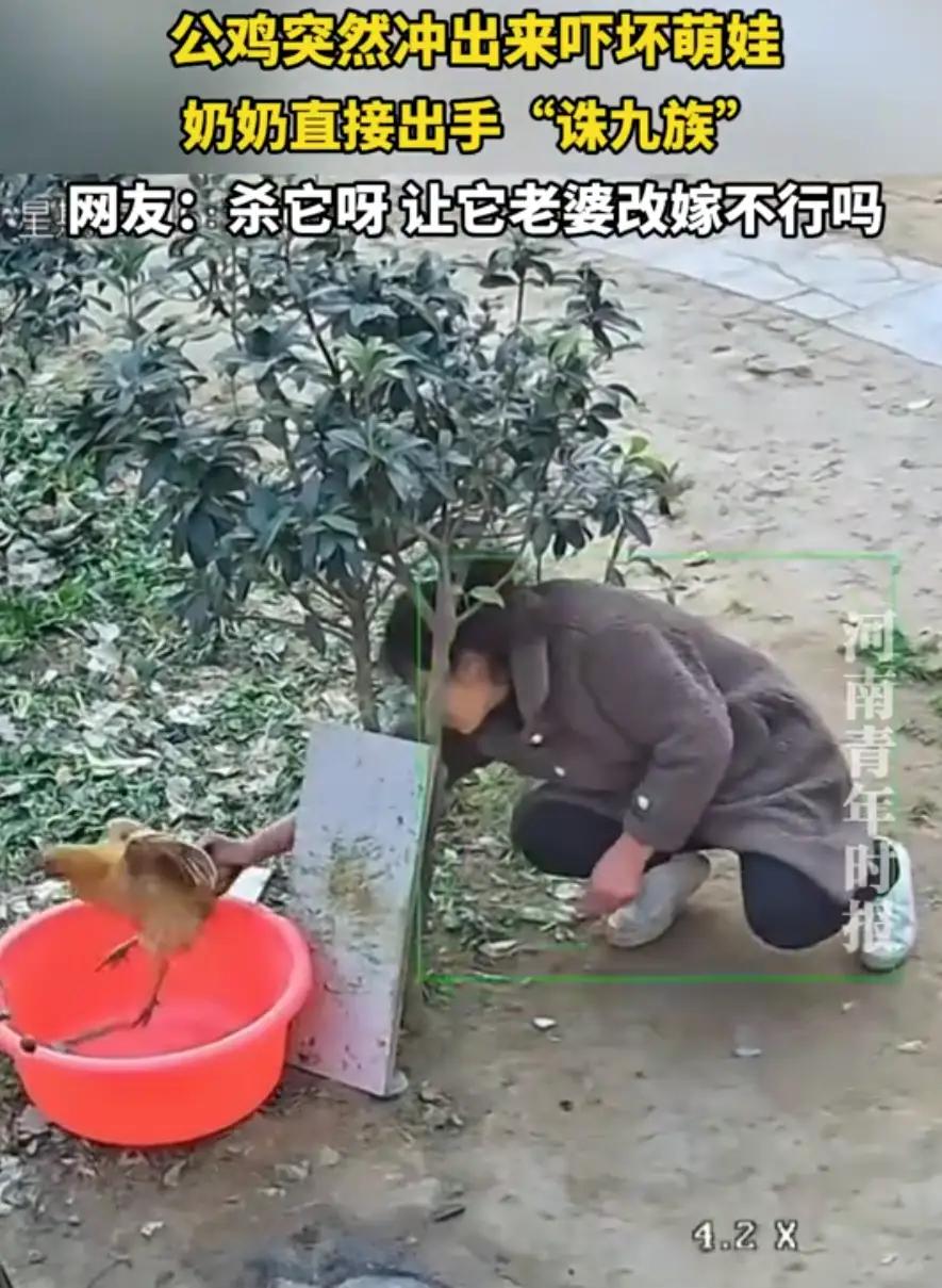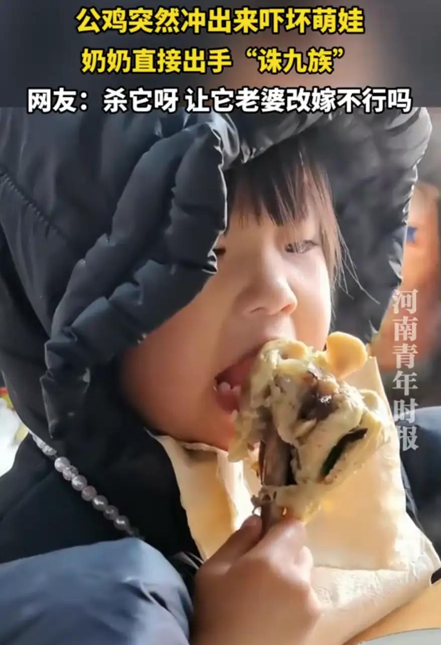 江苏宿迁,一名女童正在院中玩耍时,突然一只公鸡冲过来将女童吓哭,奶奶看到后直接出手“诛九族”,就连一旁看热闹的鸡都没放过,当晚孙女就啃上了大鸡腿。网友:杀它呀,让它老婆改嫁不行吗! 视频中,一名女童正在自家院子里玩耍,手中攥着小玩具,模样十分可爱。不料,一只体型壮硕的大公鸡突然从鸡群中冲出,冲向女童,尖锐的啼鸣声吓得女童瞬间愣在原地,随后放声大哭,泪水止不住地往下流。 这一幕恰好被奶奶看见,护孙心切的她立刻快步冲出,见状怒火中烧。奶奶二话不说,先是捉住大公鸡,随后看向一旁围观的鸡群,无论是公鸡的还是其他鸡,都没打算放过,当场决定全部处理,要给孙女出这口气。 当天傍晚,奶奶便将处理好的鸡肉下锅,炖得香气扑鼻。晚饭时,女童坐在餐桌前,手里捧着香喷喷的大鸡腿,大口啃着,脸上早已没了泪痕,满是满足的笑容,之前被惊吓的委屈一扫而空。 网友:“奶奶护孙心切,这是把鸡家一锅端了呀!”“杀它就行,让它老婆改嫁不行吗,太狠啦!”“这鸡腿吃得理直气壮,公鸡算是为自己的冲动买单了。”也有网友暖心表示:“隔代亲太好哭了,奶奶的爱简单又直接。”“小时候也被大公鸡追过,太懂这种恐惧了,奶奶好样的!” 这则充满烟火气的趣闻,不仅展现了奶奶对孙女毫无保留的疼爱,也让网友感受到了乡村生活的淳朴与幽默。生活中的小意外,在家人的呵护下变成了温暖的小插曲,而网友的趣味调侃更让这段视频充满了欢乐,成为冬日里一道治愈人心的风景线。
