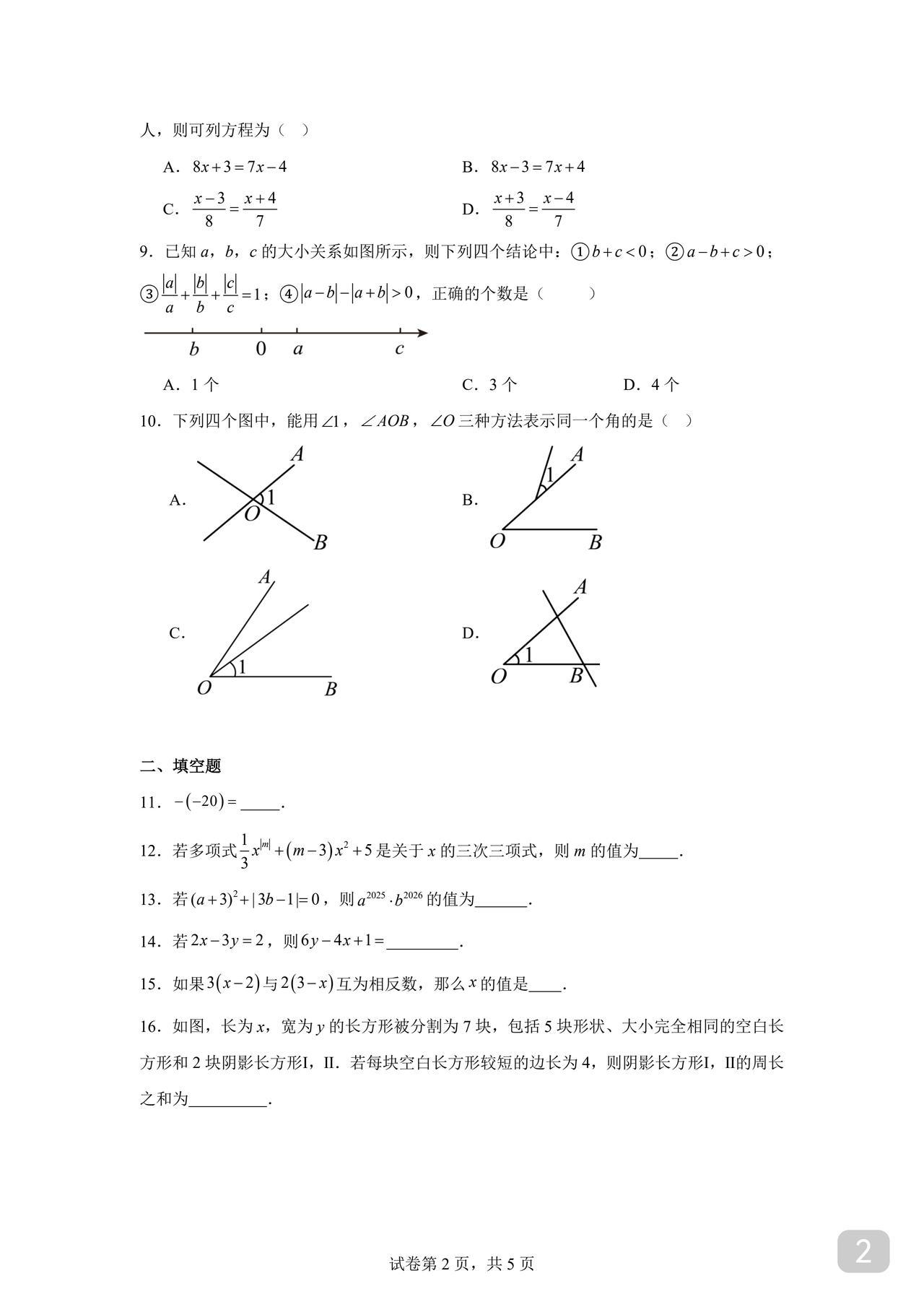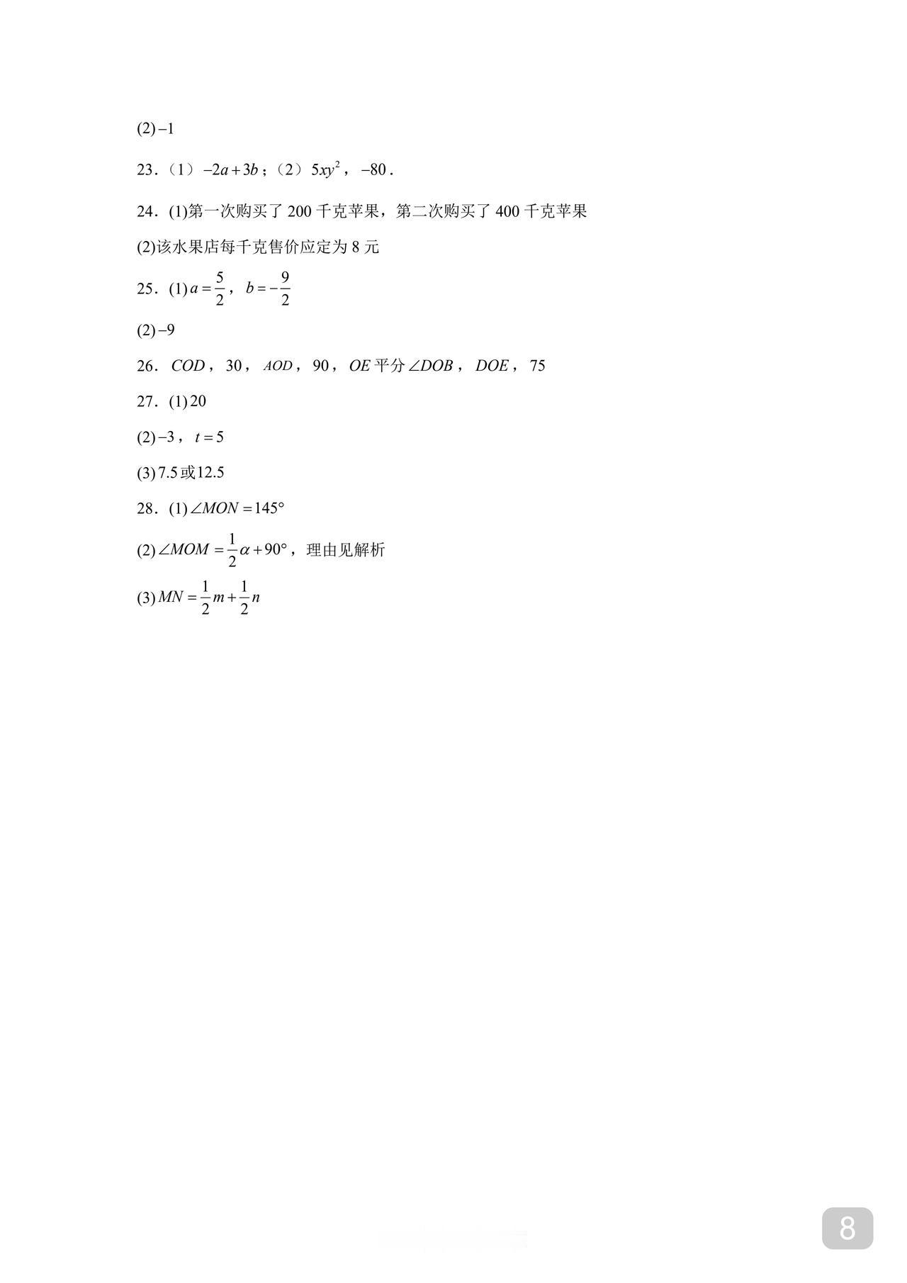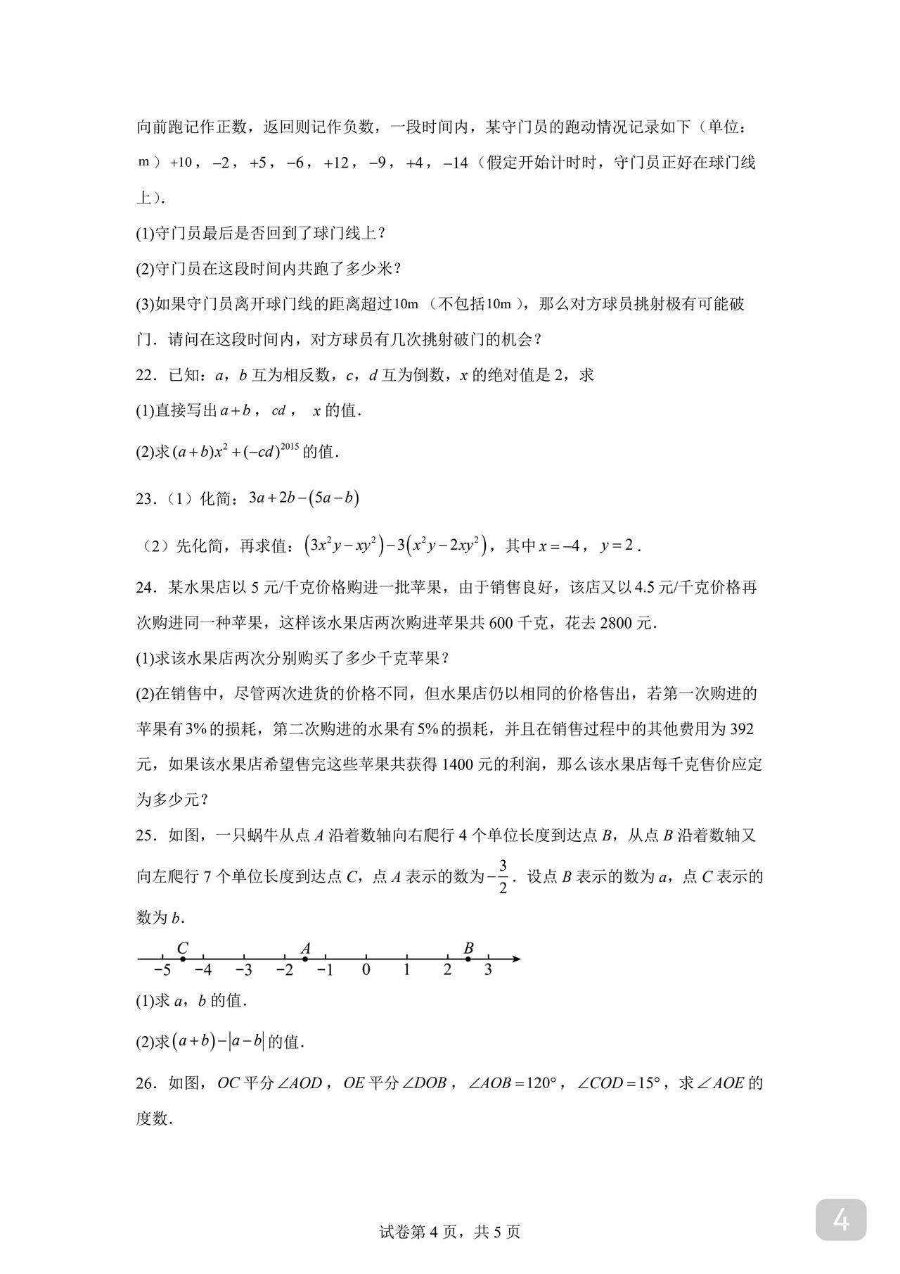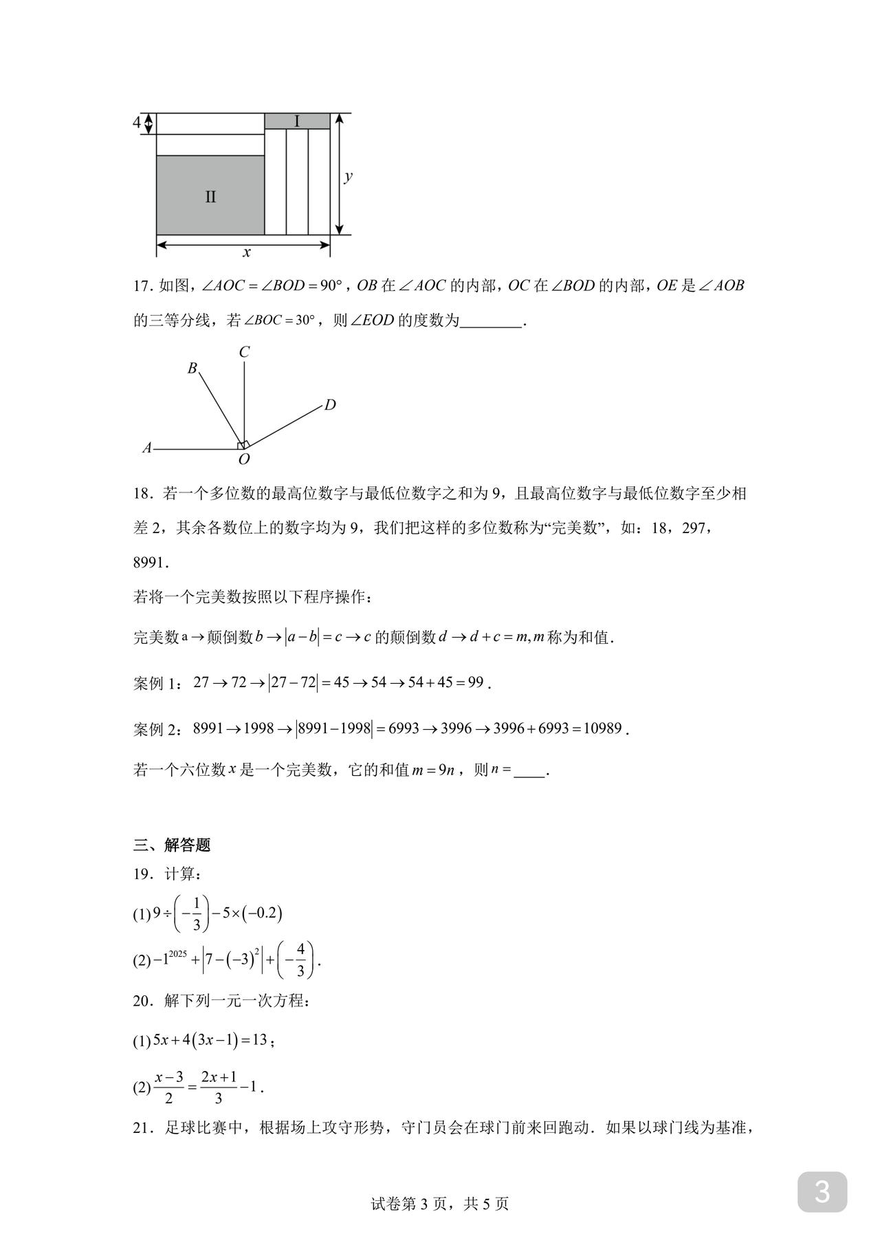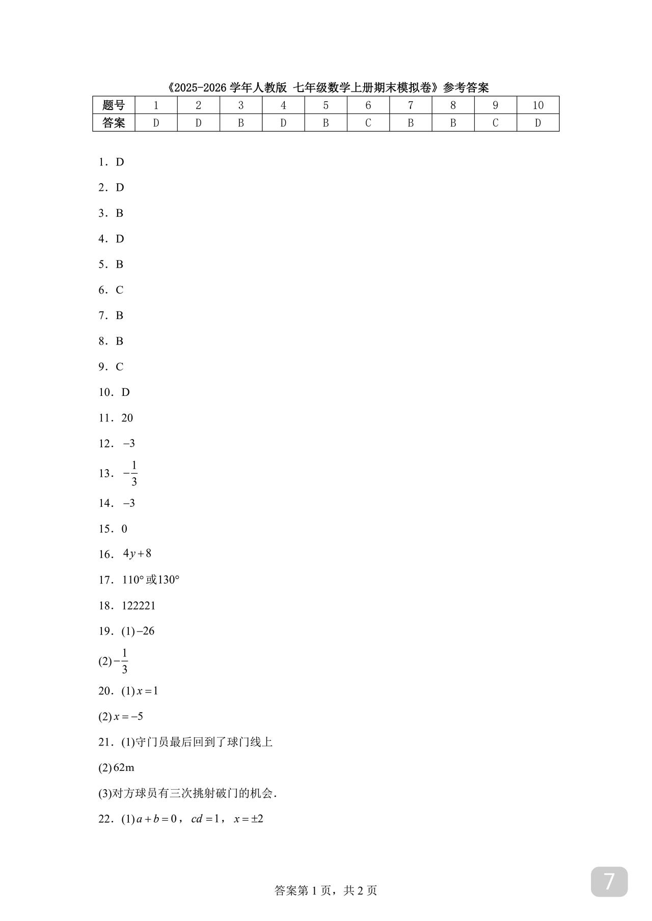 初一数学期末试卷 人教版、北师大版通用 周末到 打印给孩子做做