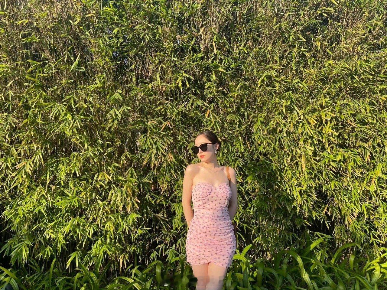 夏日清凉穿搭,粉嫩背景下的甜美少女