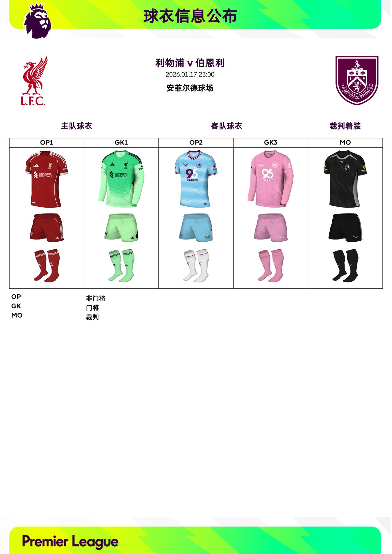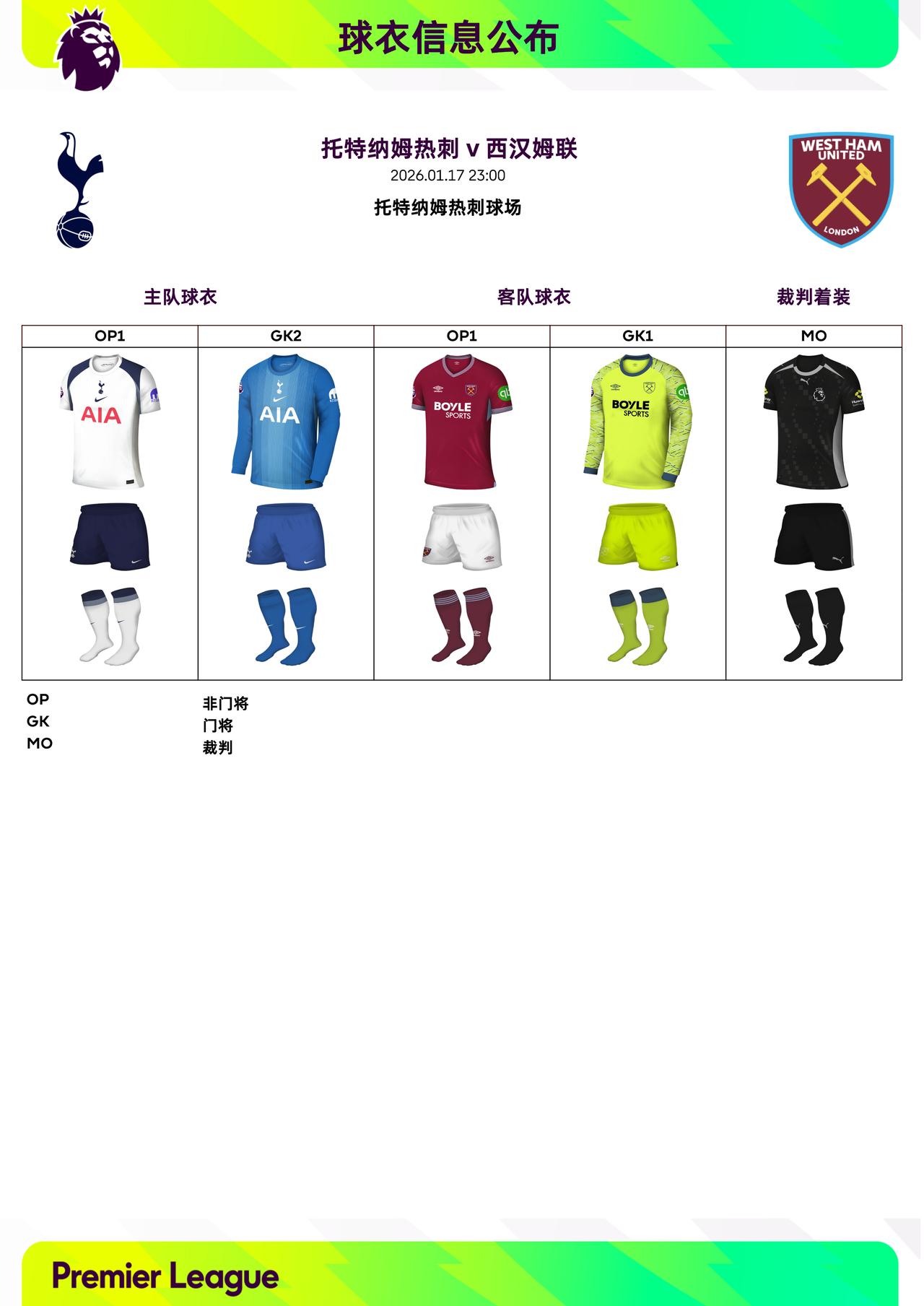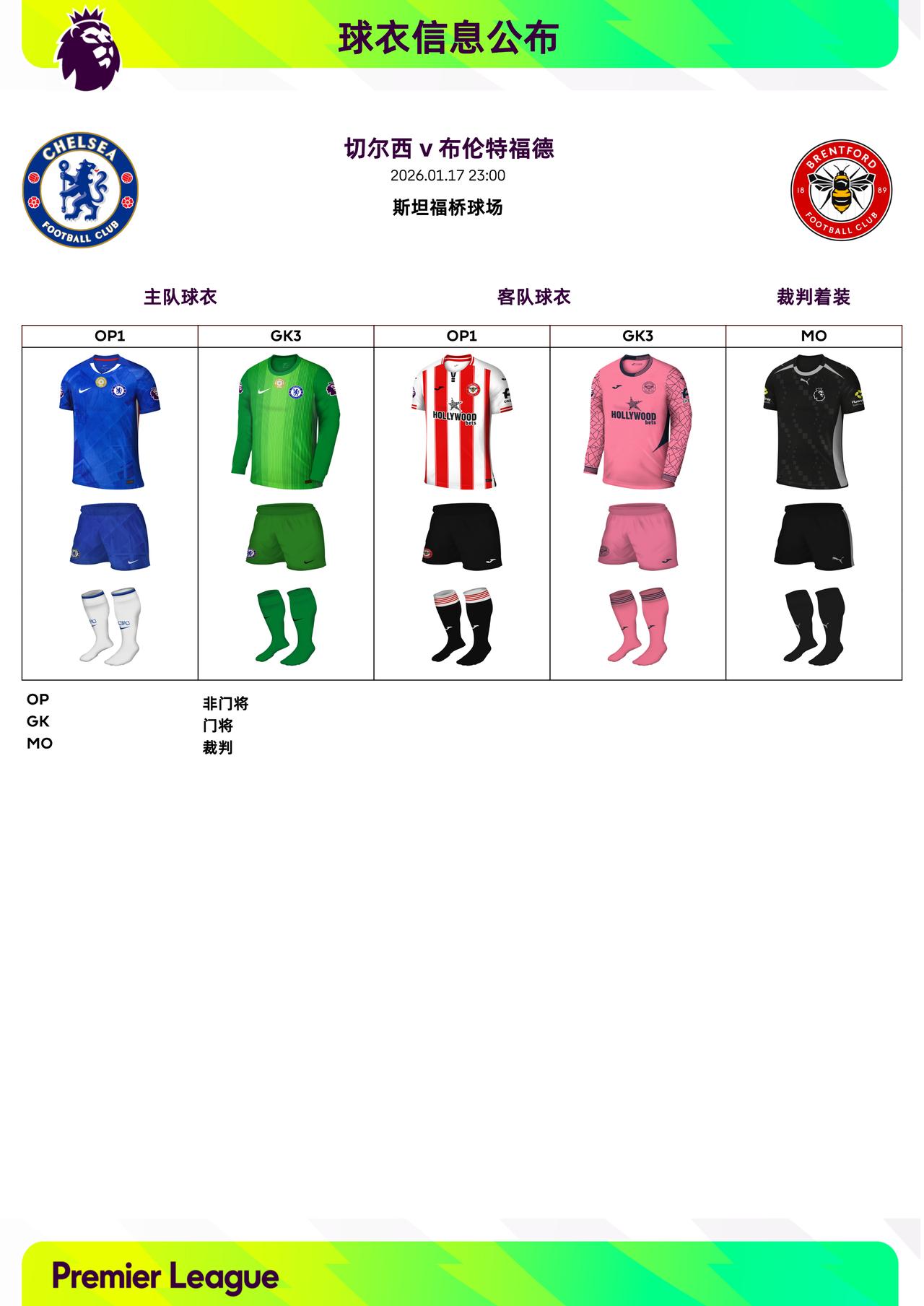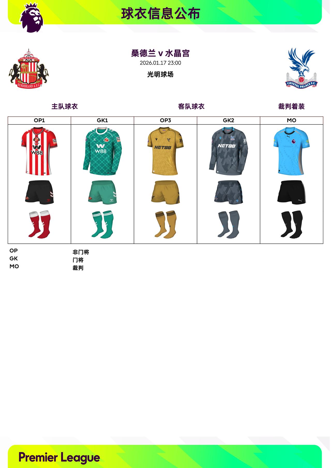 2025/26赛季英超联赛第22轮球衣信息: ◉ 焦点战——曼联 v 曼城,双方均穿主场球衣