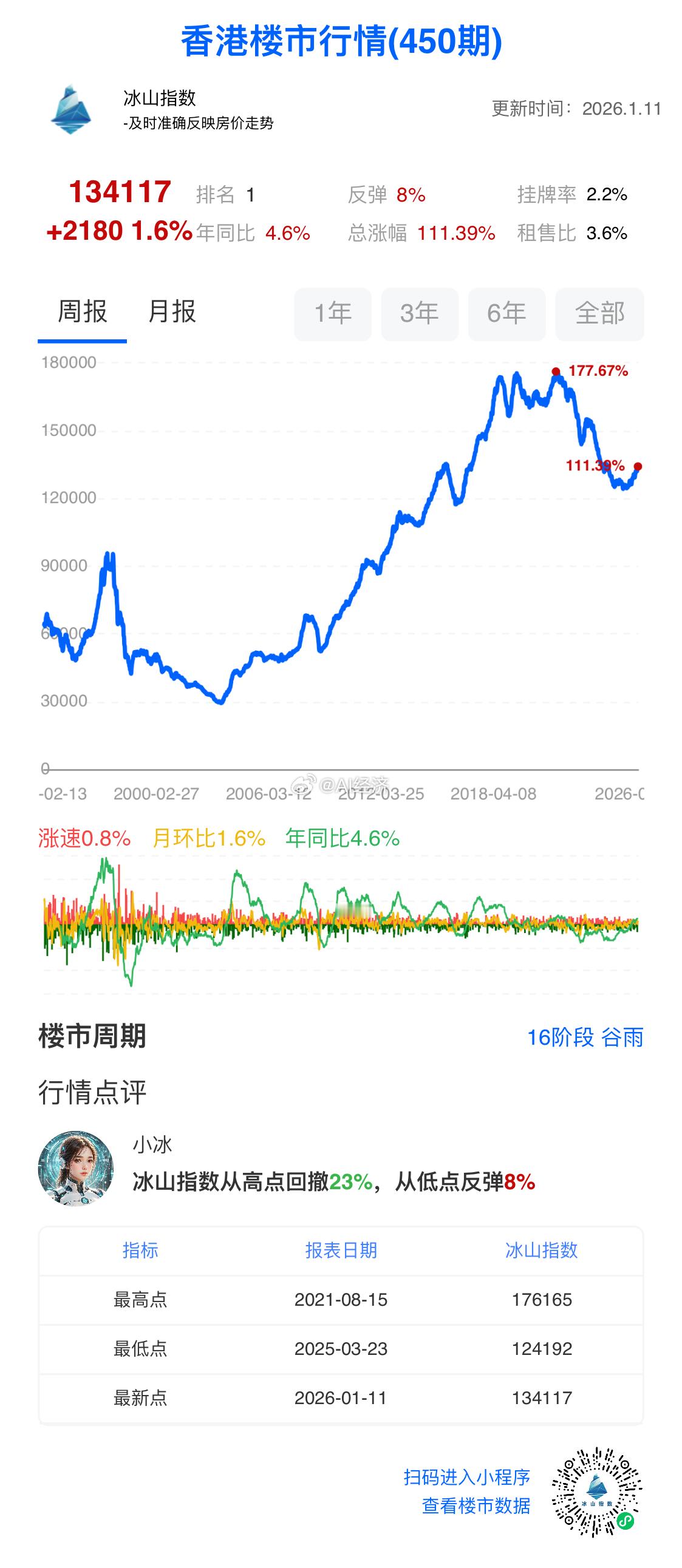 香港房地产 单价从17.6万 到12.4万 再回到13.4四年下跌23%(平均6%) 一年反弹8%核心逻辑:租金收益率3.6% 房贷利率3.1% 有0.5%的收益!香港房租在📈全国租金收益率2.6% 距离3.1% 还有20%📉持平前提是房租不能下跌!📉